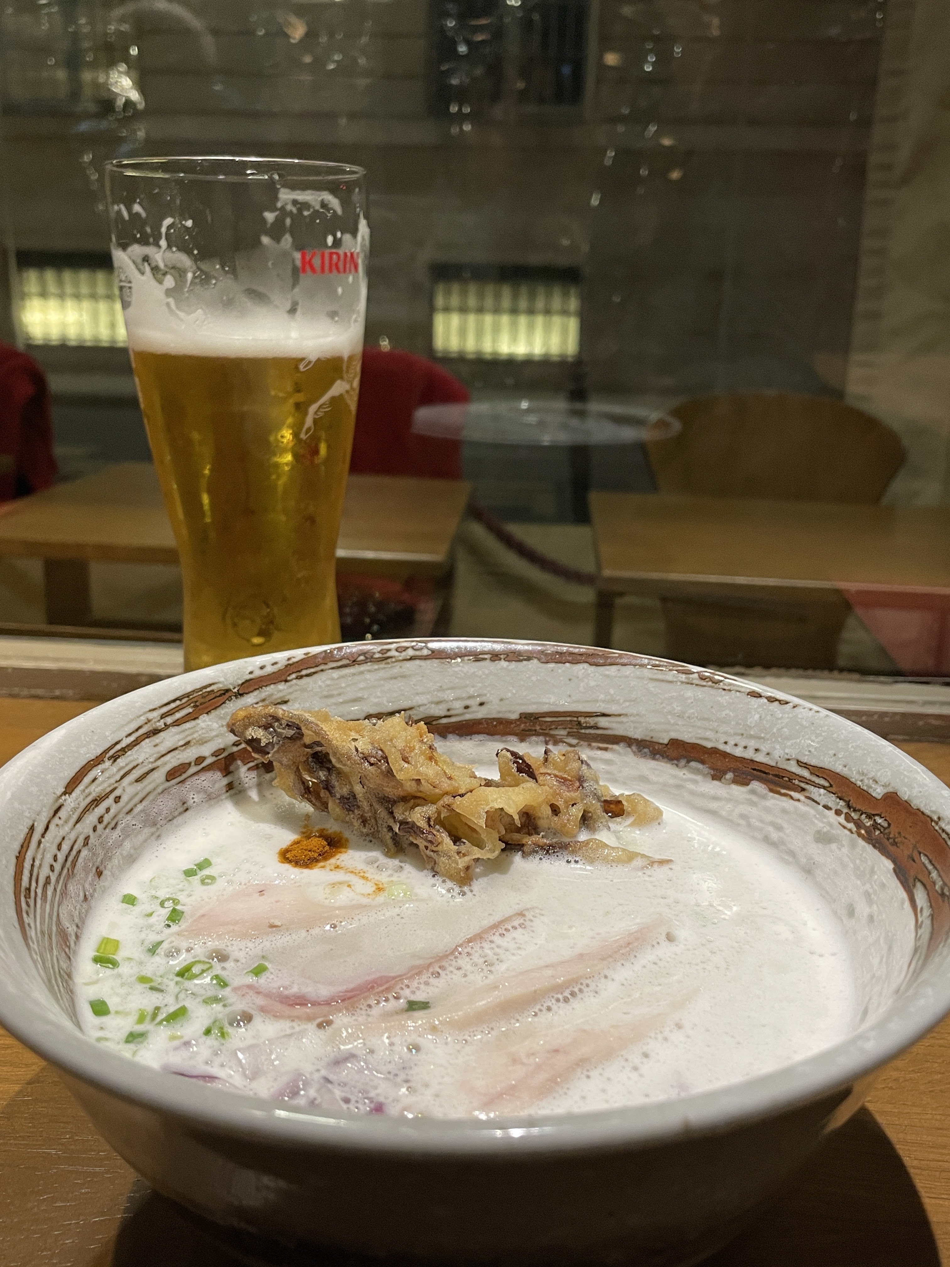 J'ai pris le ryukishin avec option oeuf mariné . Environ 20€ le ramen. C'est bon mais cher pour la quantité. La friture sur la photo n'apporte pas de plus value, c'est du gras pour du gras... Le service du personnel est un peu froid. Pensez à réserver avant de venir. Pour info, le restaurant n'accepte pas les tickets restaurants papiers ; c'est seulement par carte bancaire les TR.