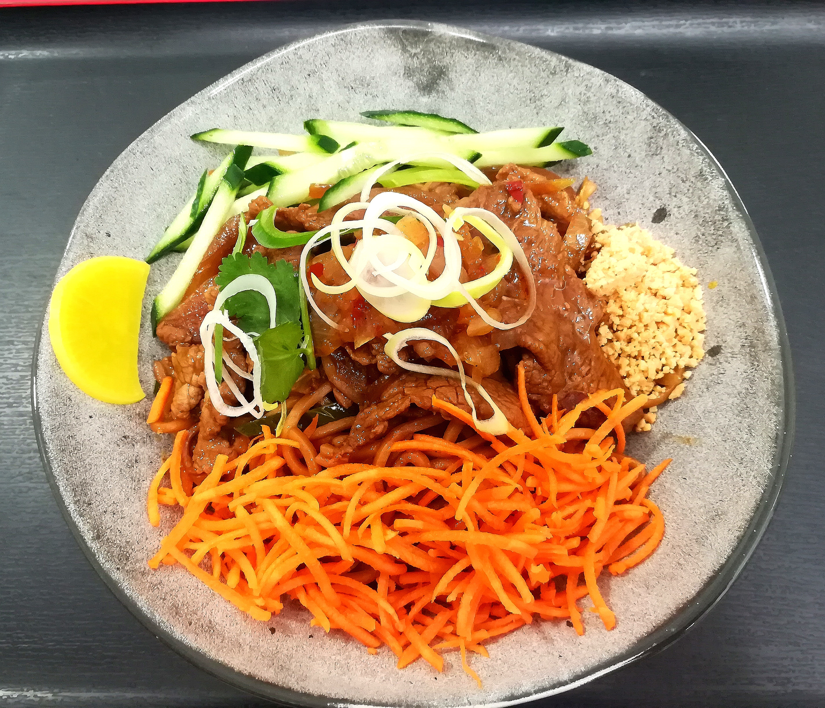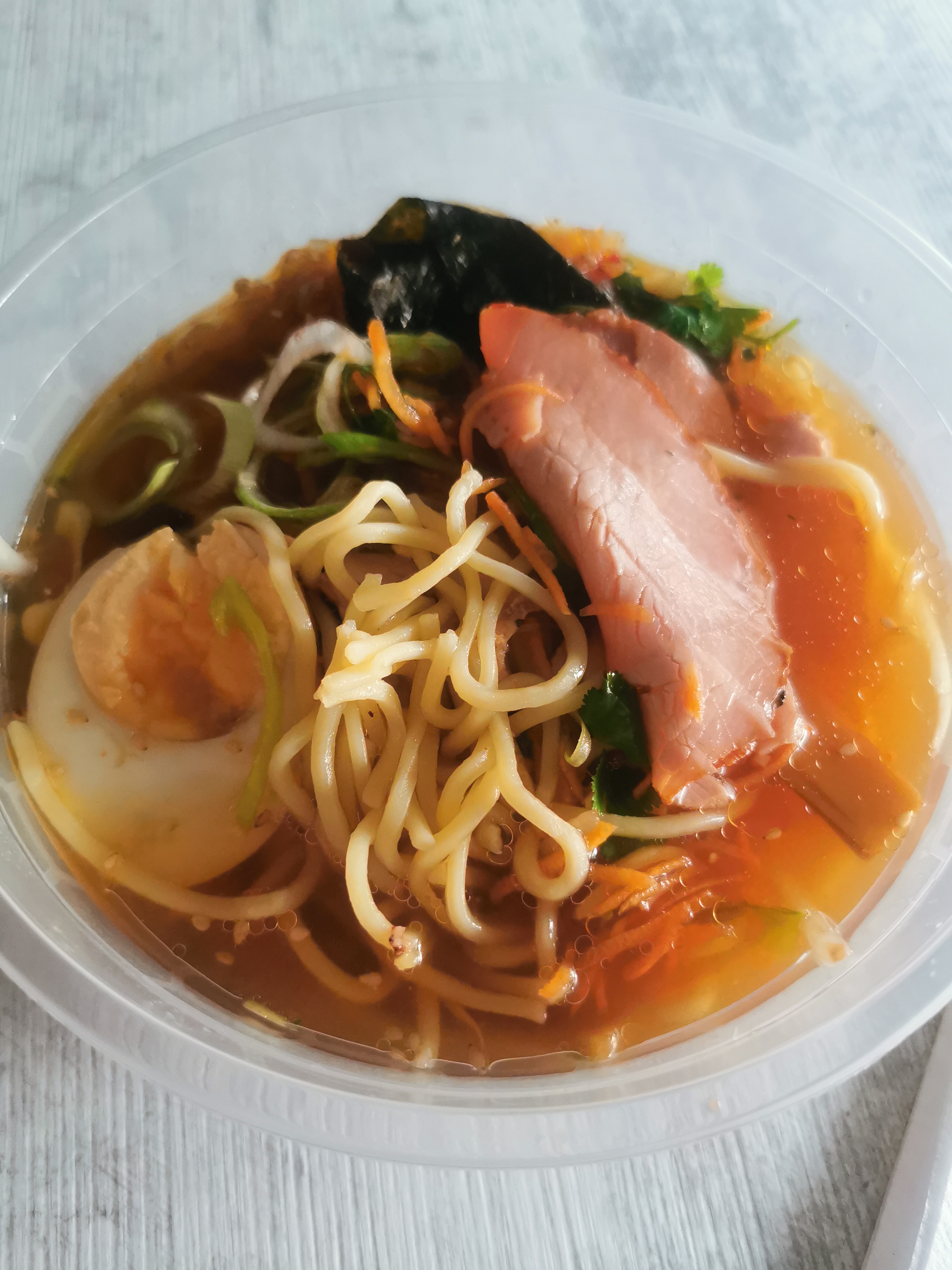 Ramen bœuf caramélisé à emporter. Très bon, très savoureux et bien garni. Le prix est très abordable et le conditionnement idéal. Le plat a été rapidement préparé. Le personnel est très agréable et bien que petit, les locaux sont propres et soignés. Je vais y retourner avec plaisir. Une carte de fidélité serait la bienvenue !