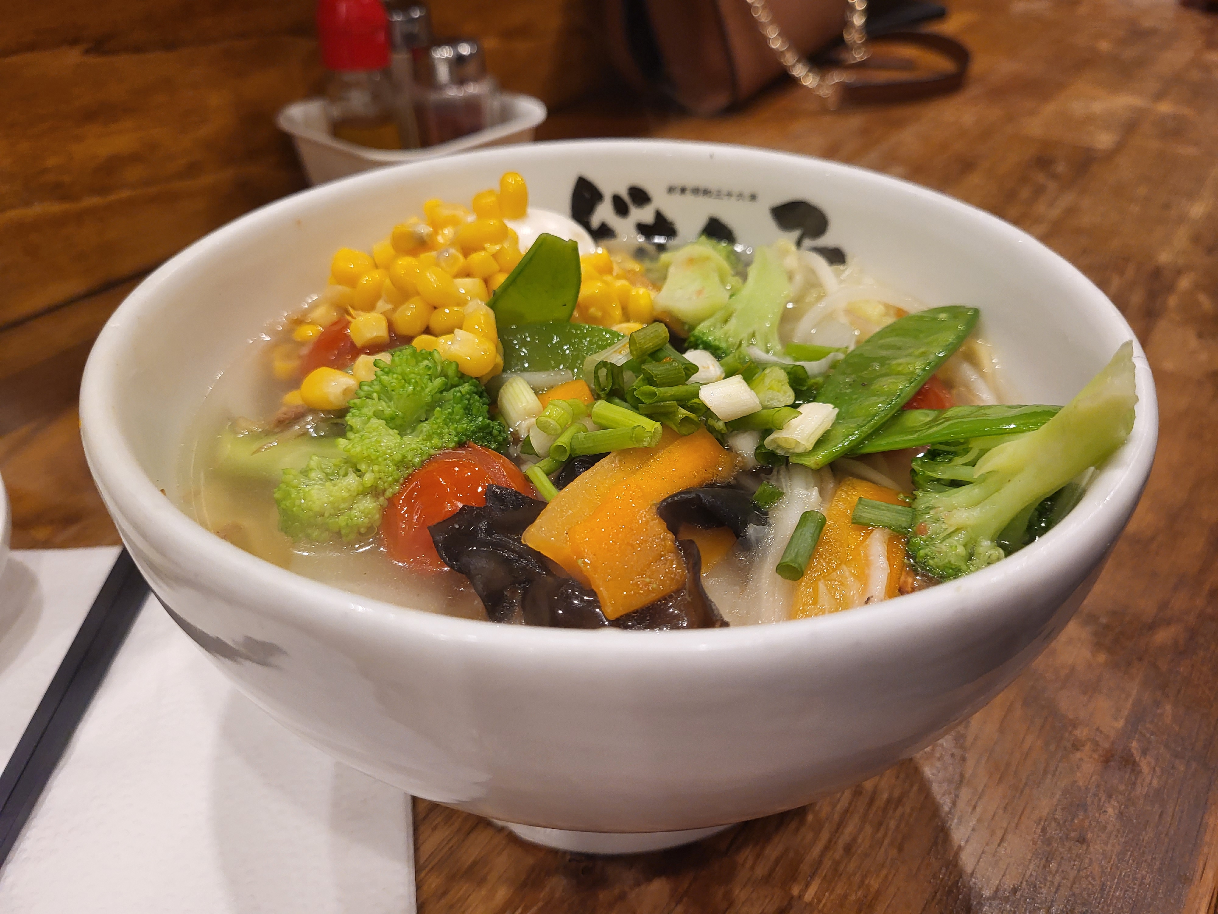 Nous avons franchi la porte car c'était un des seul restaurants ouvert a 22h30. Nous avons pris 2 grands bol de ramen (pour les gros mangeurs!) aux légumes (pour les végétariens) et aux saveurs d'automne (champignons crème). La soupe est très goûteuse !