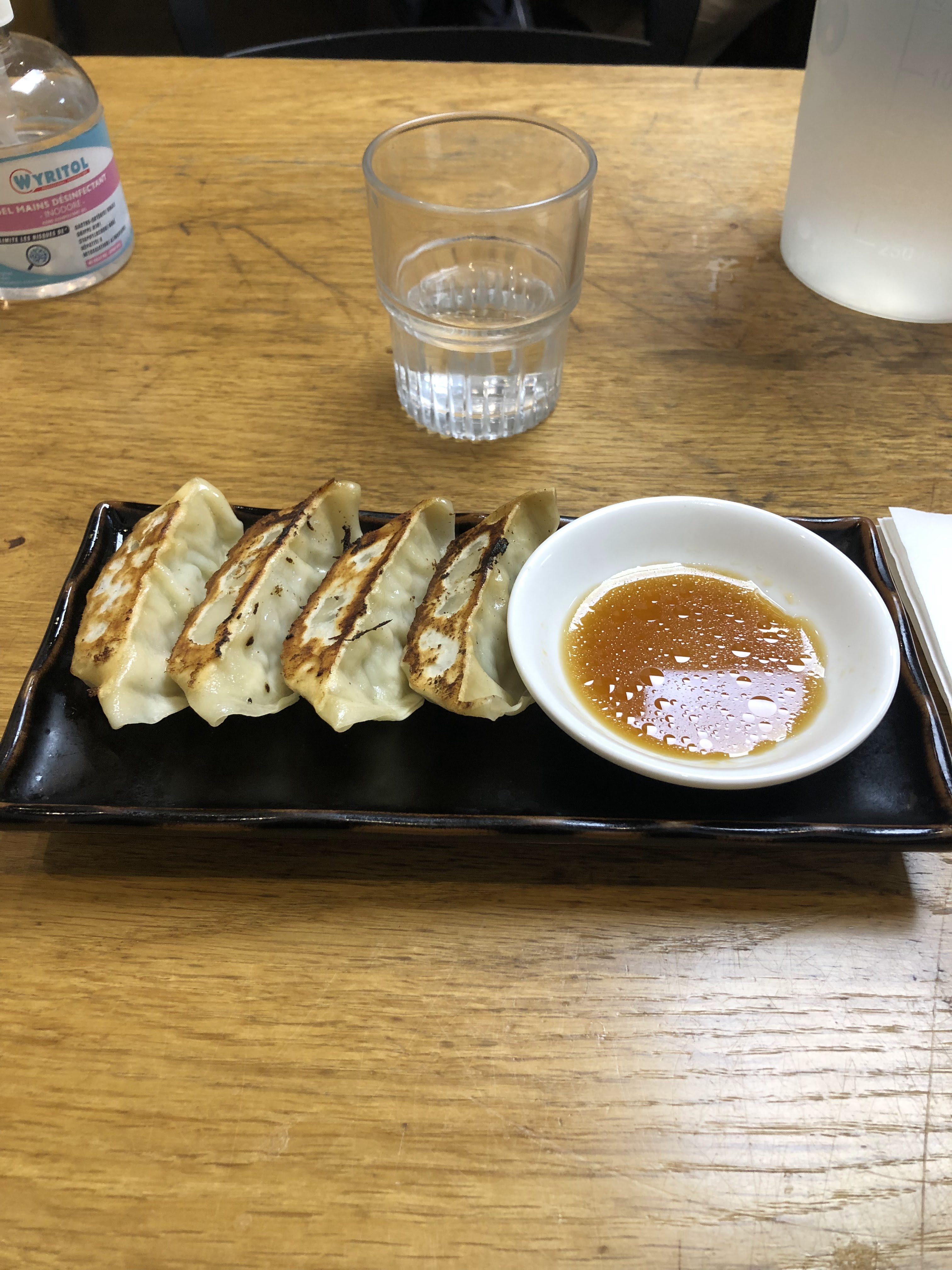 Gyoza bien froid, bouillon comme les instantanés… déçu. ( Toilettes pas du tout comme vous pensez.😅