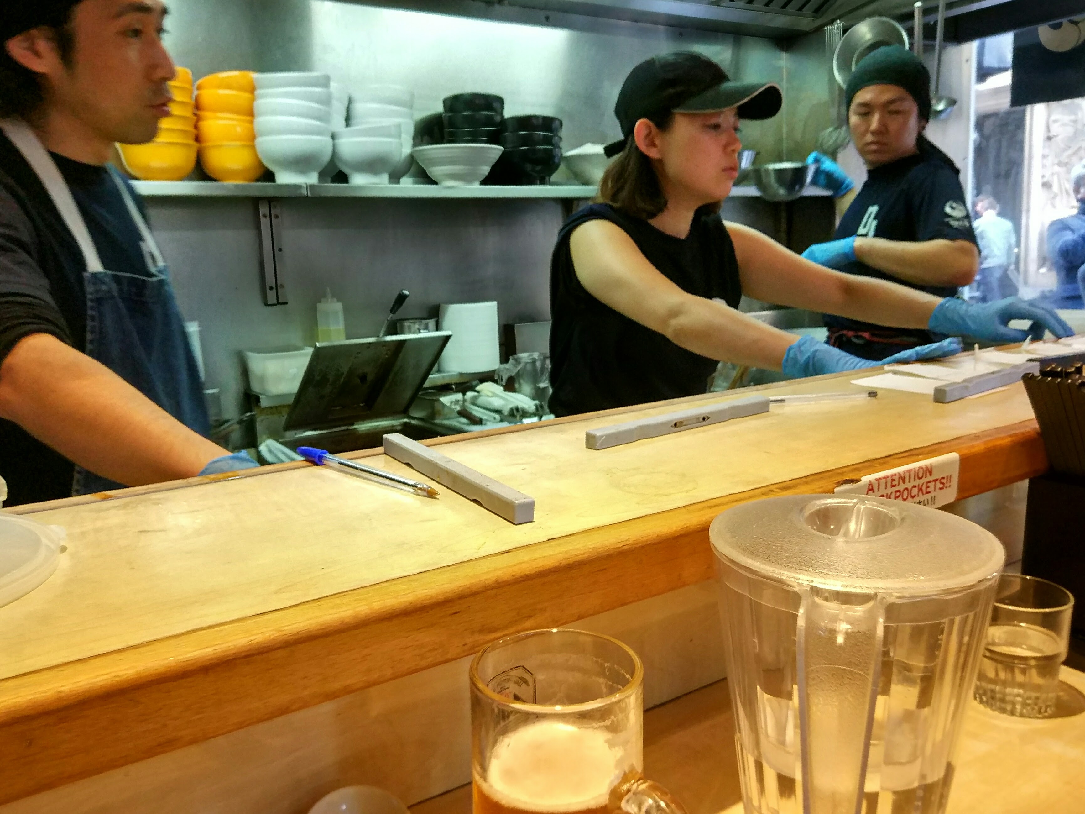 Les grands bols sont vraiment grands en effet. Pas mauvais mais pas inoubliable pour autant. Pour ma part pas de problème d'hygiène ni d'intoxication. J'ai mangé sur une place seule, sans visite aux toilettes. Il y a toujours du monde qui fait la queue, et pas mal de japonais également (à en juger par le bruit fait par mes voisins de table lorsquils mangent les ramen :)