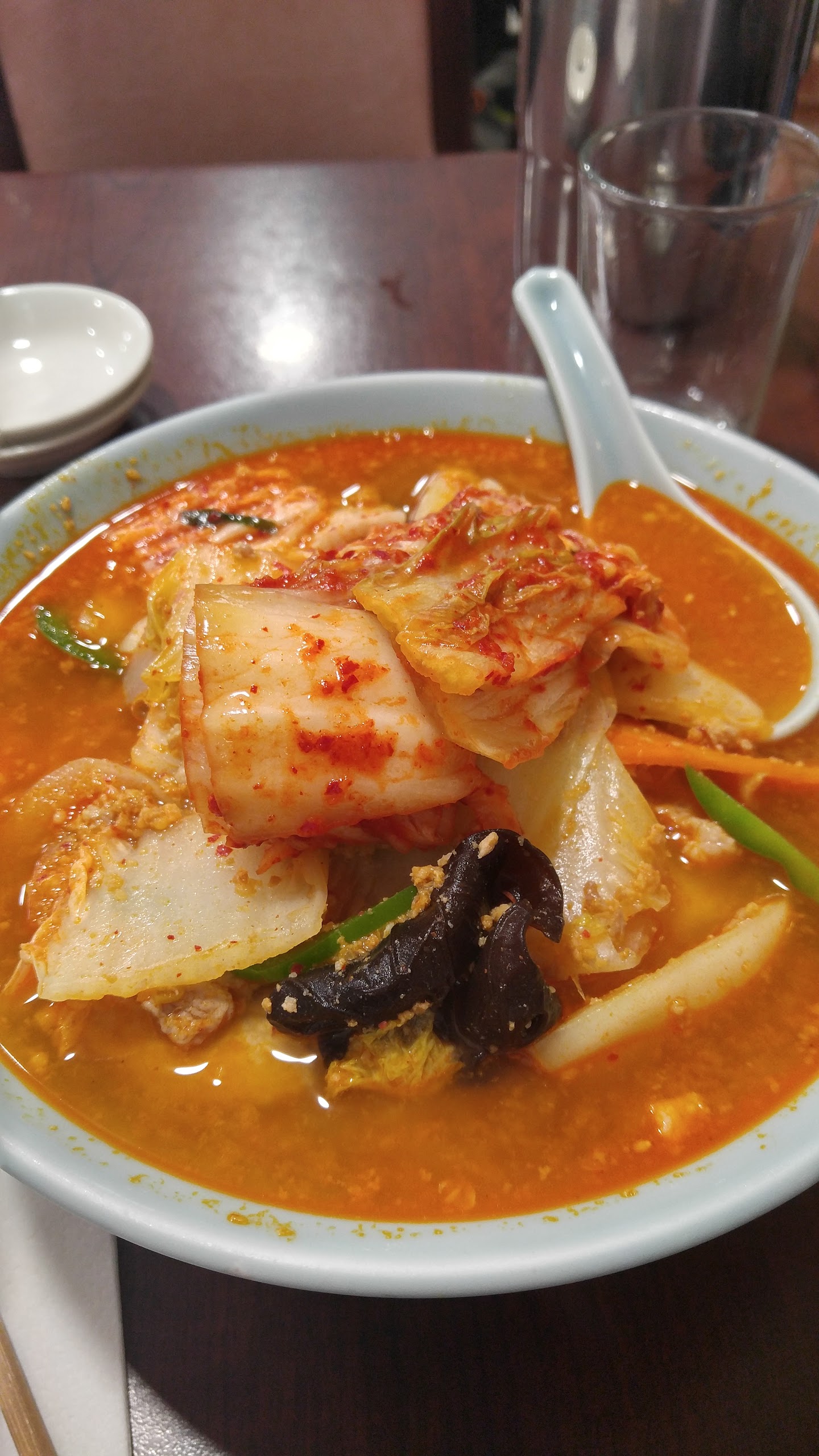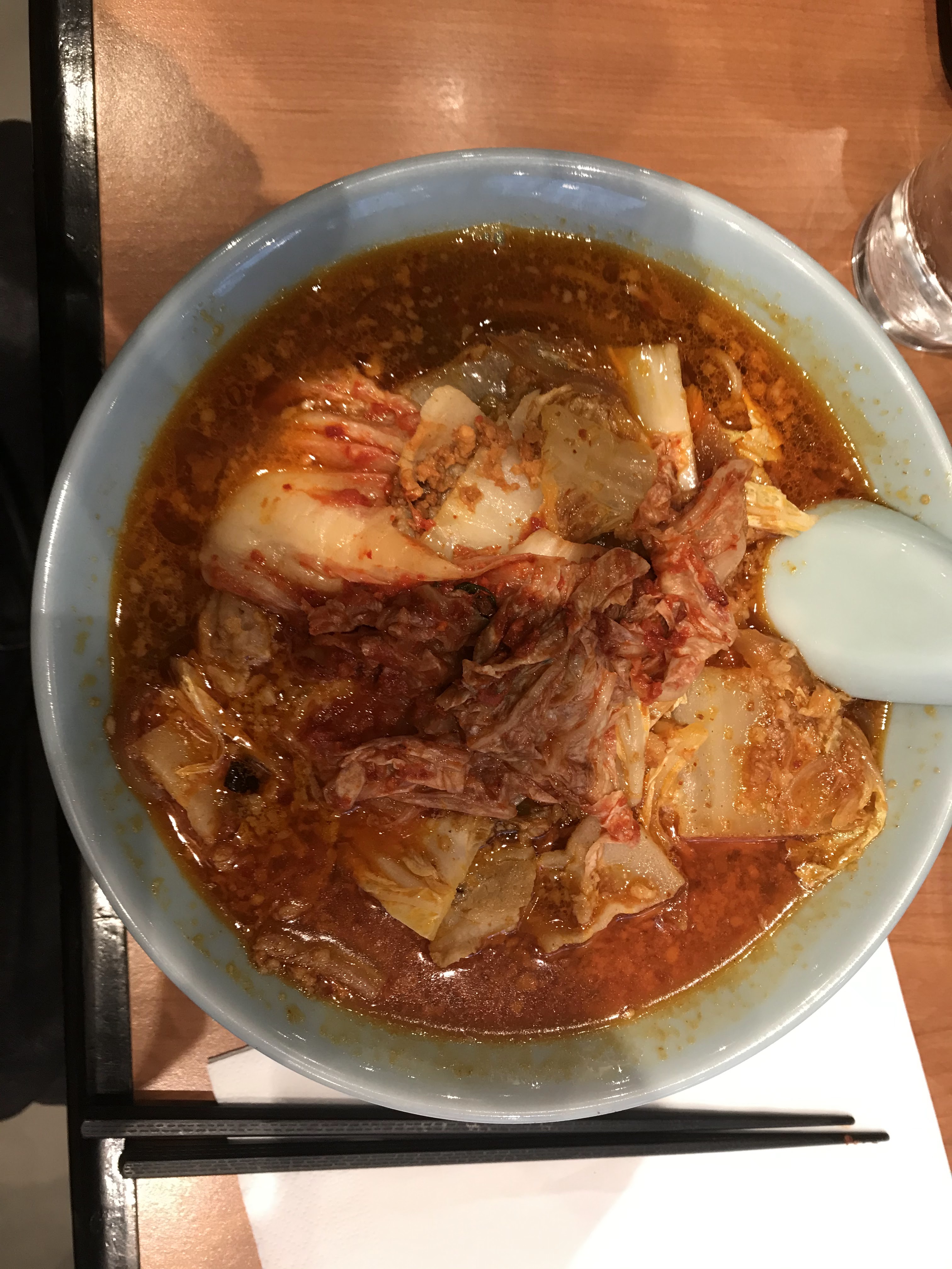 Situé dans un quartier très touristique, idéal pour profiter de la cuisine japonaise et coréenne. Concernant le restaurant le bouillon était très bon , la viande très tendre sauf que la pâte trop gluante. Le service est lent, ils ont oublié notre coca et ont voulu qu’on le paye.