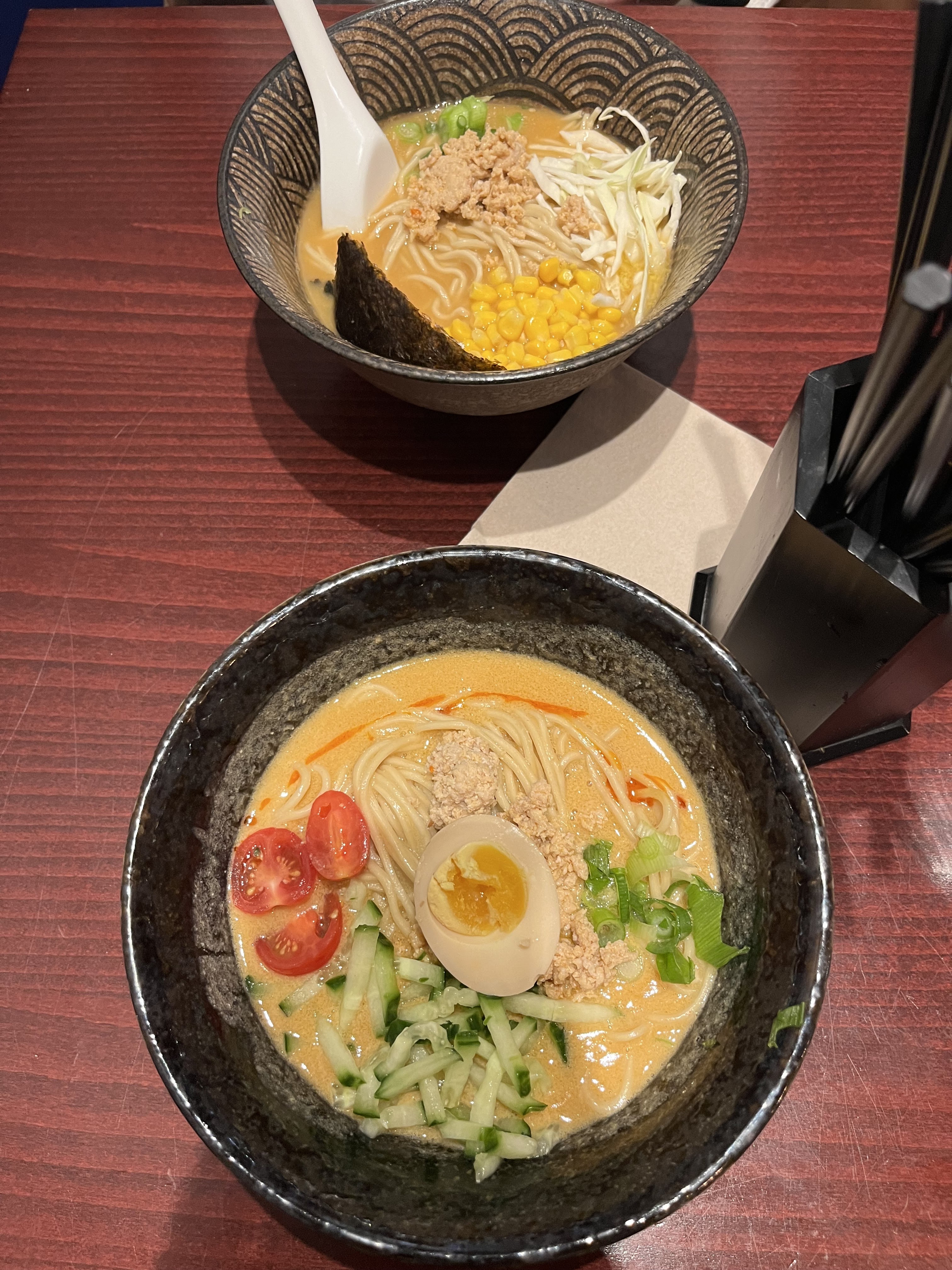 Moi qui voulais manger des ramens depuis longtemps, je suis comblé. Même si le couteau et la fourchette se ressemble tellement que j'ai pas pû les différencier 🤣 Mais on a très bien mangé et rien que la présentation donne envie