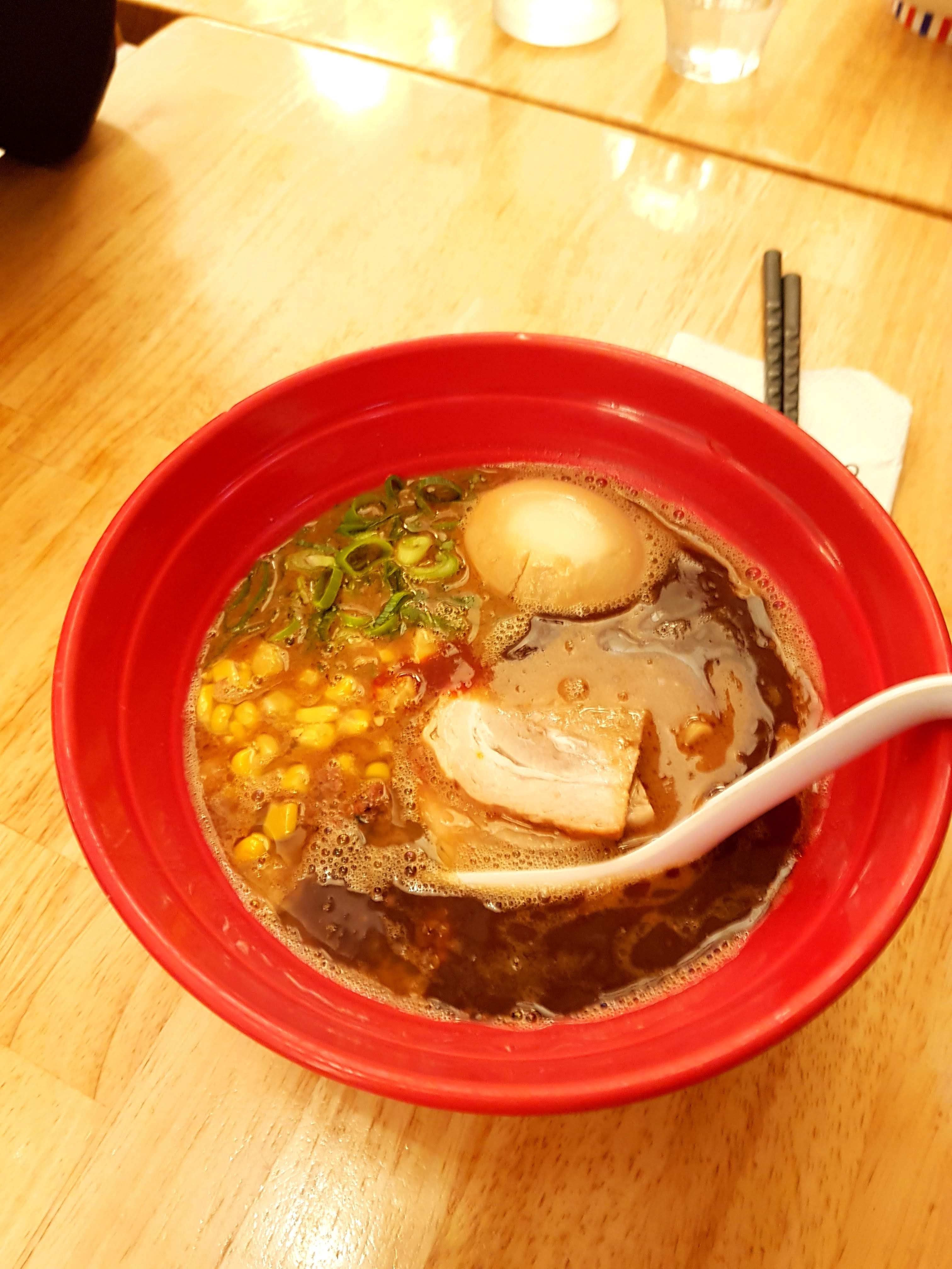 Il y a la queue, le restaurant est plein, pourquoi pas tenter ? Très déçue par les quantités que l’on trouve comparé à d’autres adresses de ramen moins chers (sur paris). Les bouillons étaient loin d’être savoureux… nous sommes deux, nous avions pris du karage, des takoyaki, un bol de ramen chacun à 18€ avec 4 tranches de porc et nous n’avions pas fini rassasiés pour un total 53€. Alors que pourtant nous sommes loin d’être de gros mangeurs. Ce qui me choque le plus c’est d’avoir un bol à 18€ sans œuf, sans algues, juste des champignons, des morceaux de porcs, de ciboulettes et des nouilles. Bref, à ne pas refaire…