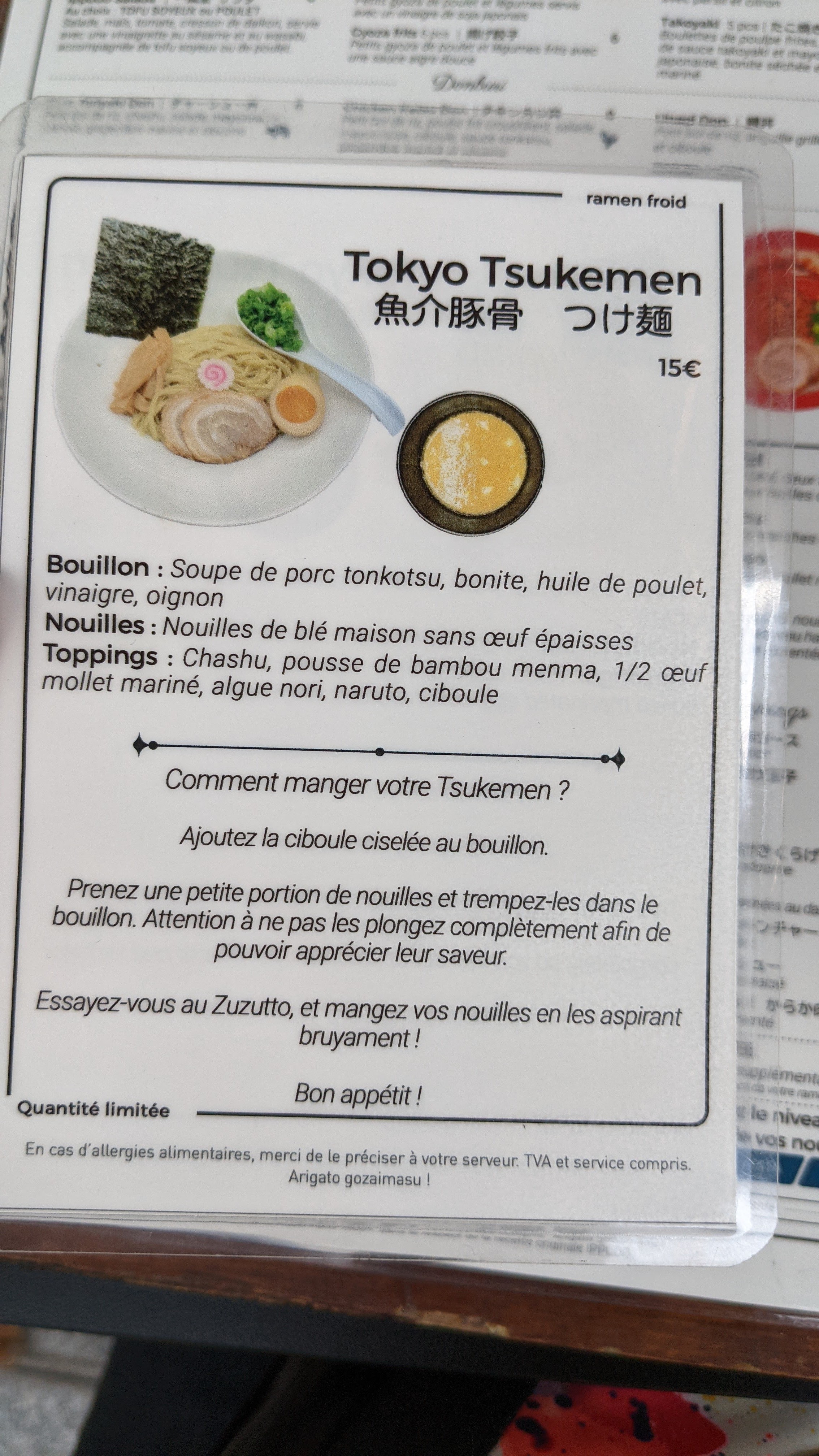 Je suis dans période Ramen et je voulais en tester plusieurs. C'est mon second que je fais parce que j'en avais entendu beaucoup de bien et je n'ai pas été déçu. Par contre l'ambiance du restaurant est un peu froide mais je n'y suis allé qu'une seule fois en fin de service déjeuner donc je pense que je ne suis pas objectif.