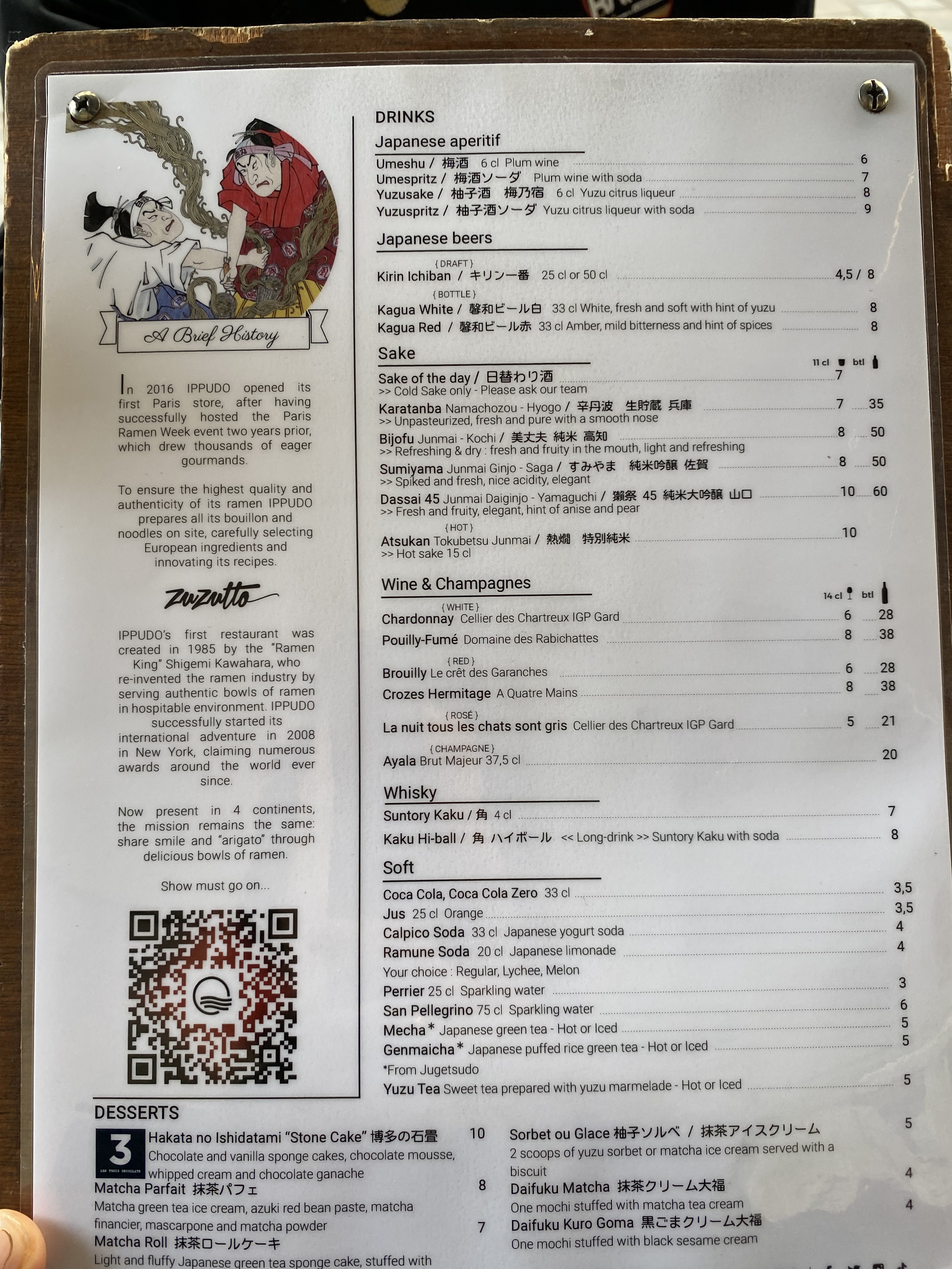 Ippudo fait partie d'une franchise de restaurant de ramen. J'avais adoré celui de saint Germain mais celui ci est beaucoup plus froid et moins agréable Il est cependant plus grand avec une carte plus fournie. Ça reste un très très bon restaurant de ramen