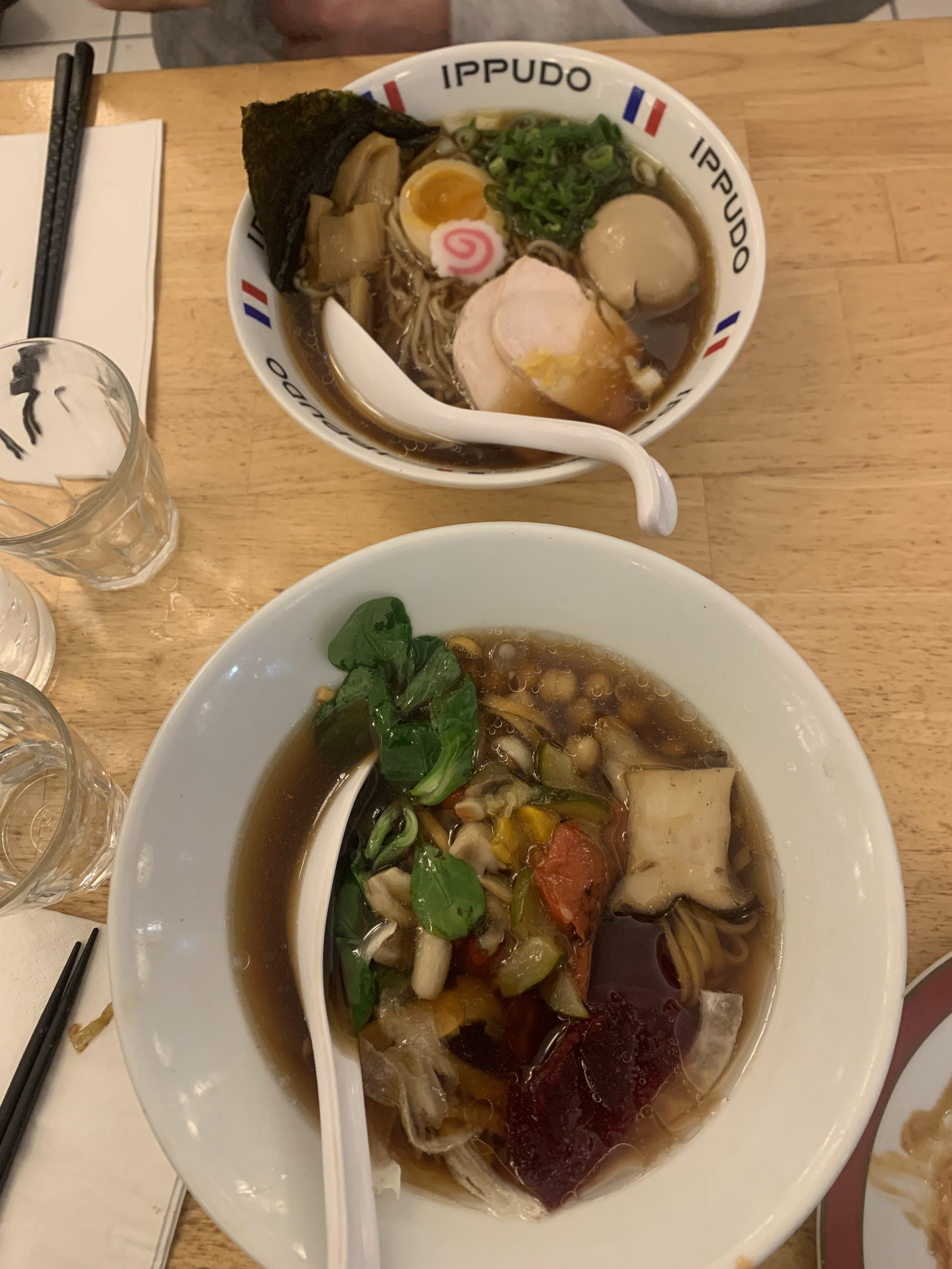 Le ramen végétarien à la ratatouille est vraiment bizarre. C'est très décevant d'aller dans un restaurant japonais pour manger un ramen qui a le goût d'un plat provençal. Je ne comprends pas ce que les cuisiniers ont cherché à faire.