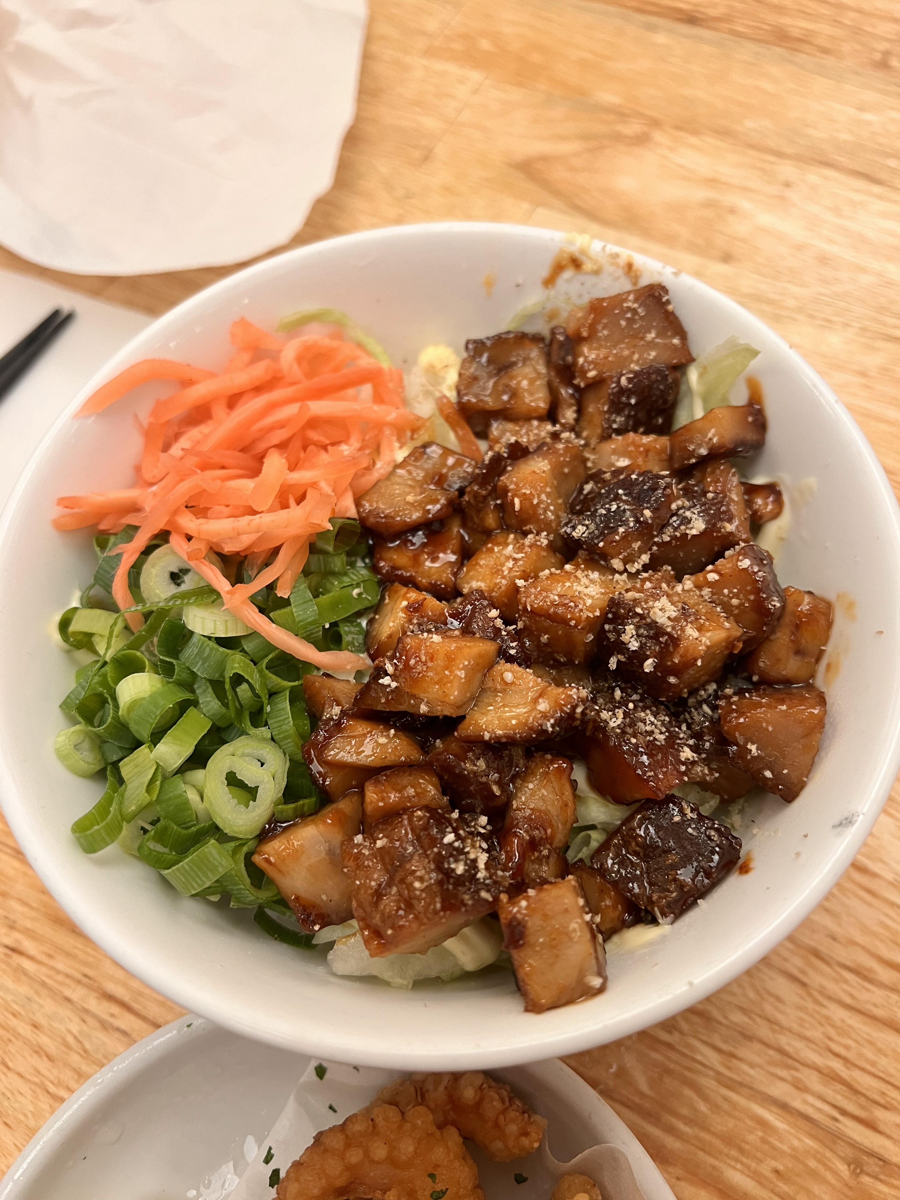 J'ai pris un tonkotsu ramen, correct. Au niveau du goût du bouillon, je ne le trouvais pas super gras pour un tonkotsu, la portion assez petite pour le prix. Ce sont des nouilles fines ( je préfère les grosses mais ça on s'en fout), mais j'apprécie qu'on nous laisse choisir entre 4 cuissons. Je n'ai pris qu'un seul bol donc cet avis ne compte seulement pour le tonkotsu.
