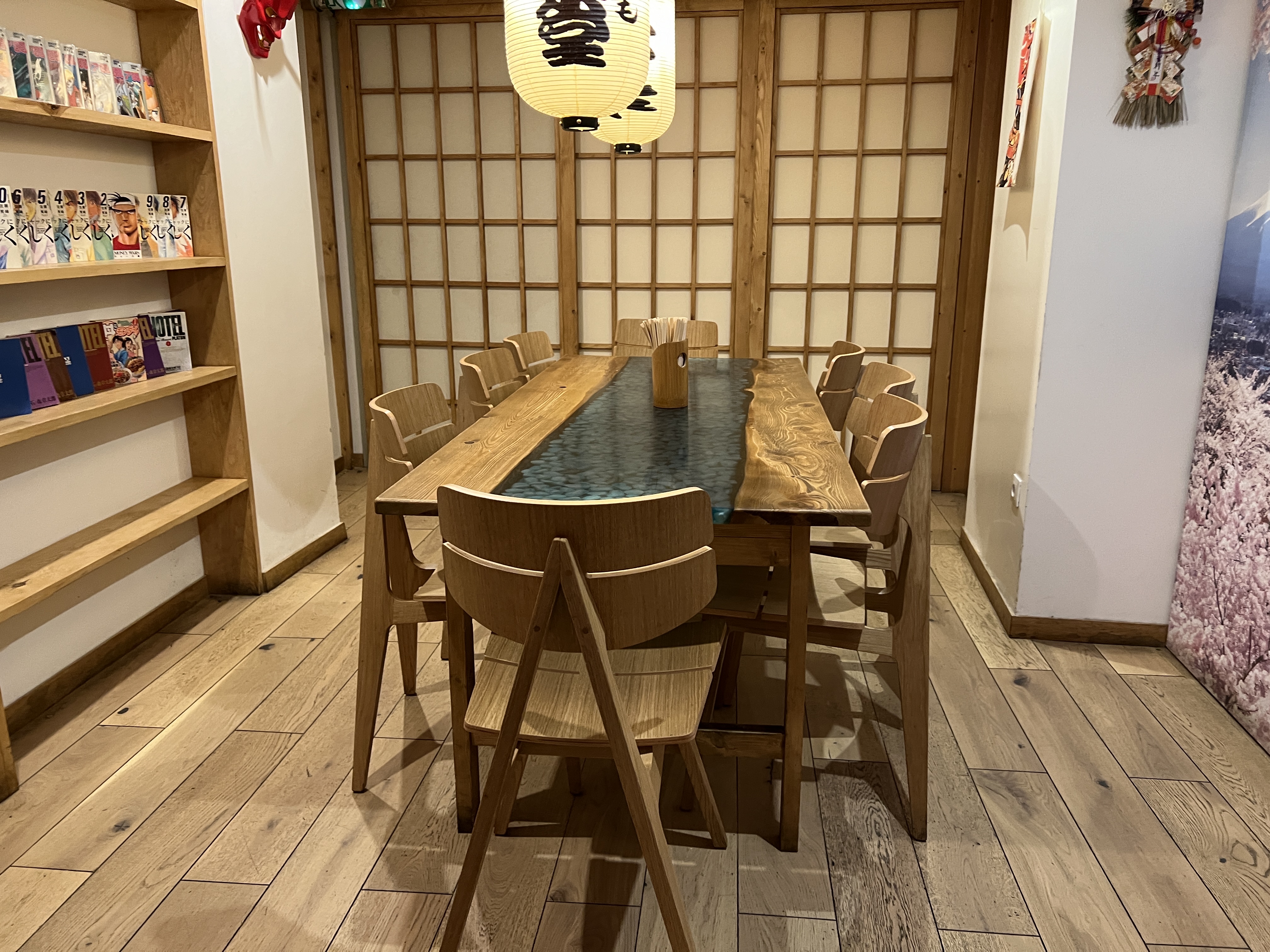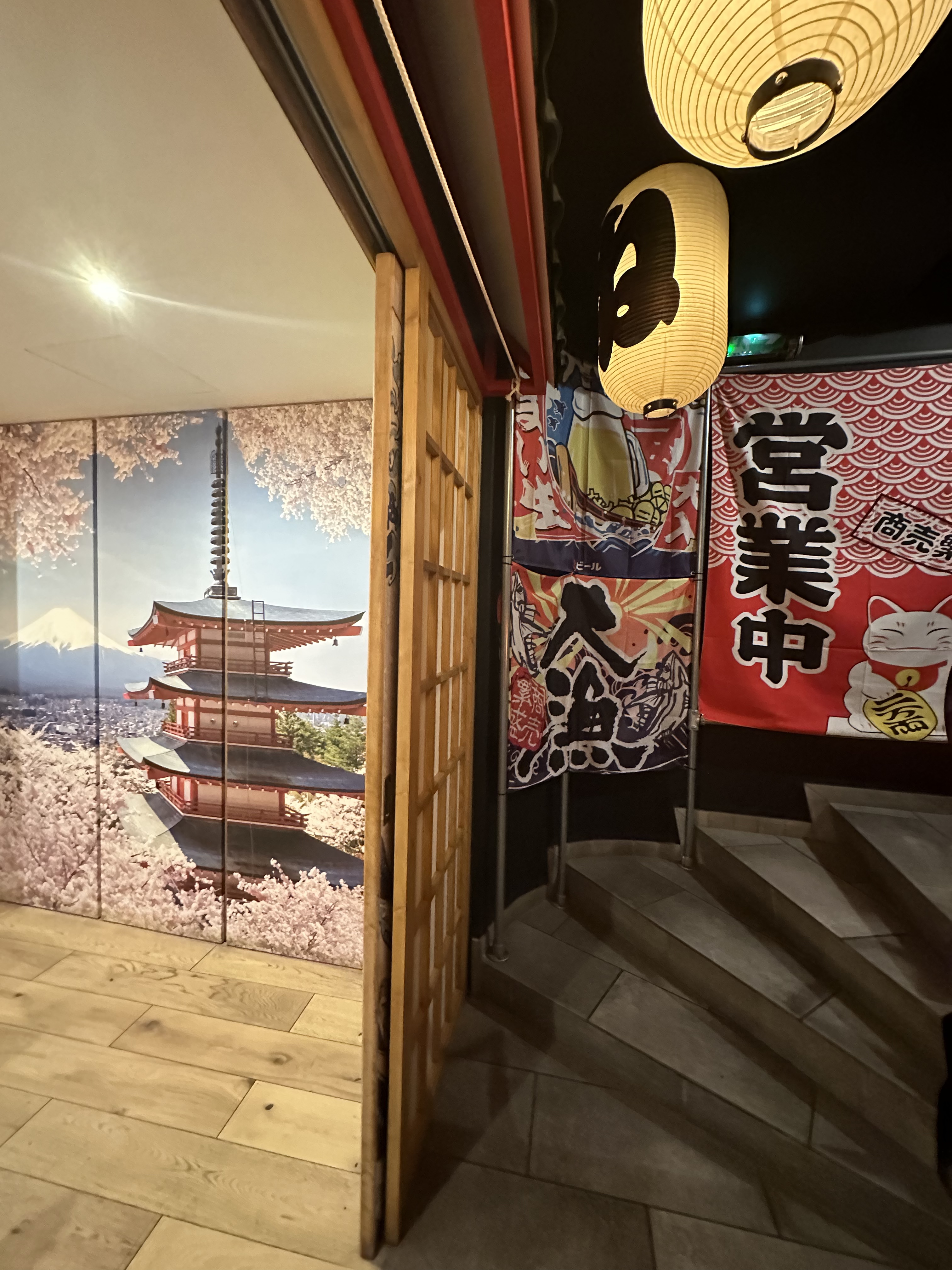 Ouhaaaaa que c'est beau ! L'ambiance japonaise est belle est bien là et ça fait vraiment plaisir ! Je trouve juste dommage d'avoir suspendu des objets choisis un peu au hasard pour donner un genre de magasin de bic à brac qu'on trouve au Japon. Sans ça la déco serait parfaite ! L'accueil est super. Le personnel est souriant et aimable. Ça me fait plaisir de voir que la personne qui a prise notre commande connaissait bien le nom des plats. Les plats sont super bons. Juste légèrement déçu par l'okonomiyaki... Je suis à amoureux de ce plat mais là il était bon mais sans plus... Manque quand même plus de choix en dessert (japonais et pas industriel) En tout cas, nous reviendrons 😁 Merci pour ce voyage