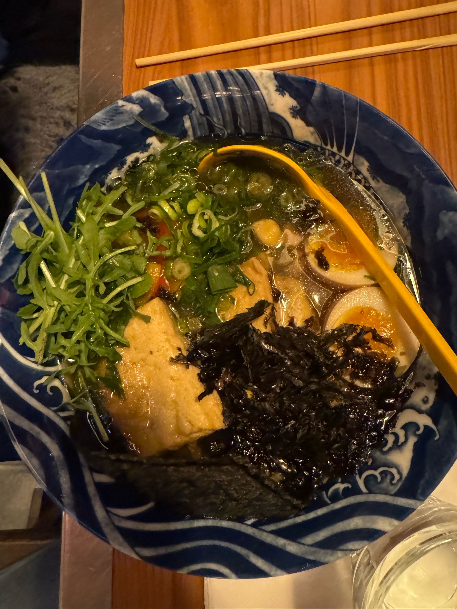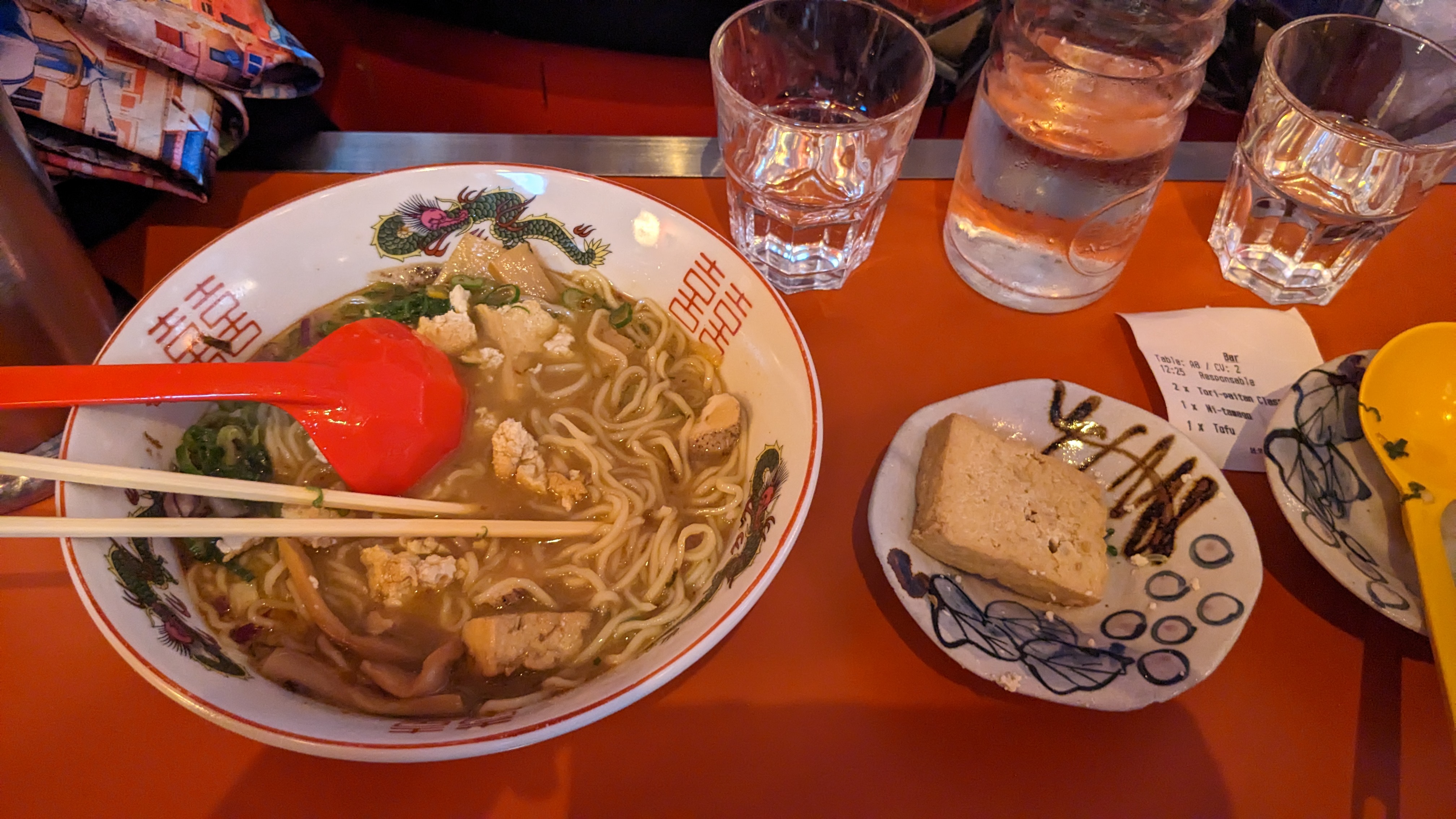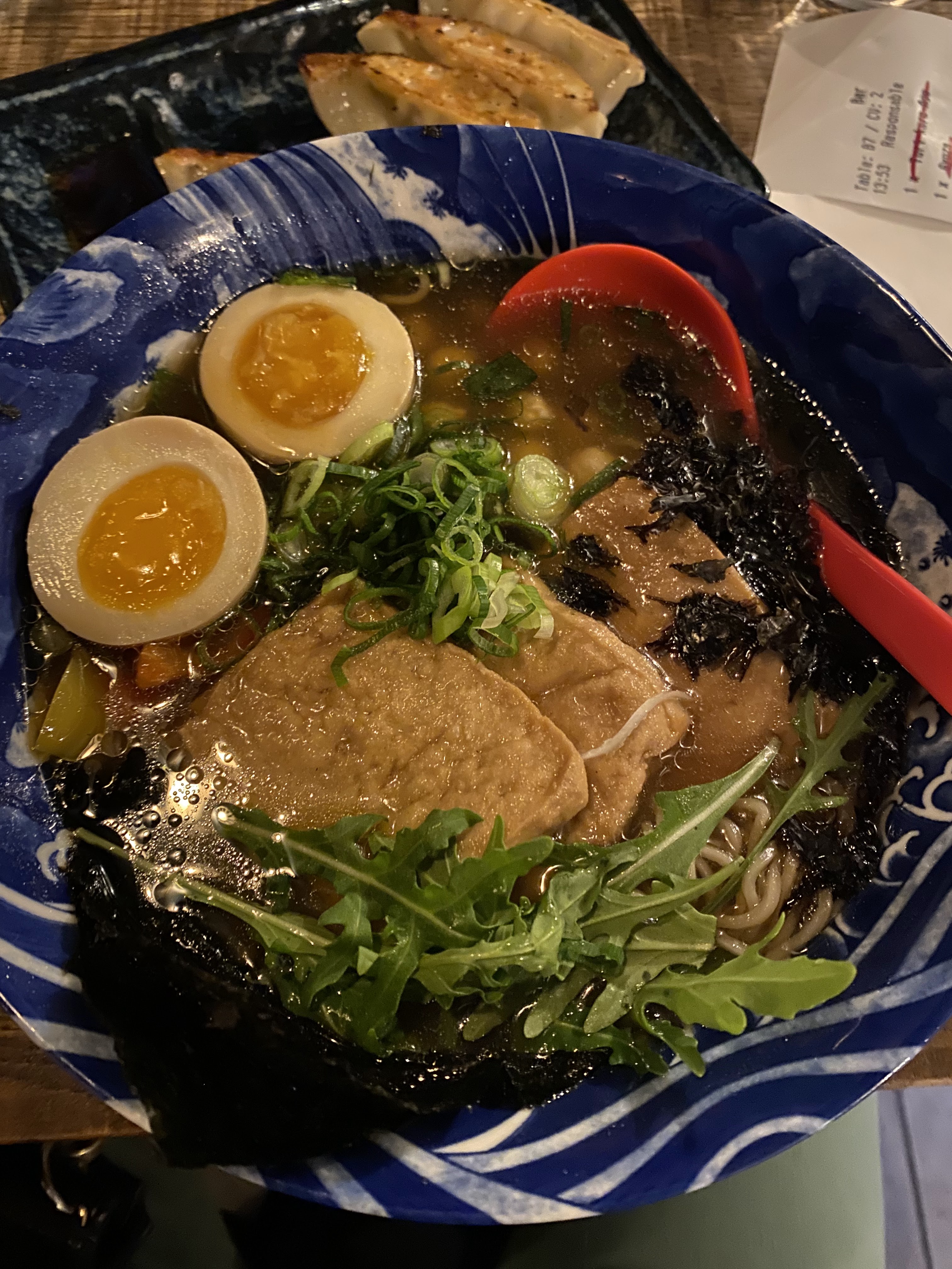 Une superbe expérience !! Le cadre est absolument magnifique 😱 J'ai pris un ramen végétarien qui était vraiment délicieux. Le goût change de ce que j'avais ou goûter auparavant, mais ça reste très correct. Les prix ne sont pas exorbitants. Un peu d'attente à l'extérieur, à prendre en compte.