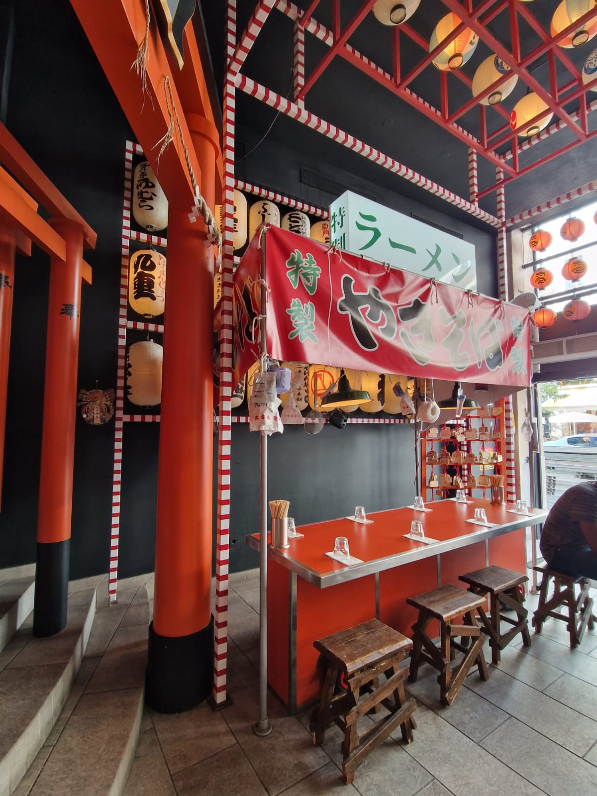 Nouveau restaurant de Ramen a paris avec un décor vraiment sympa rappellant un matsuri dans un sanctuaire shinto. Service rapide et très sympa. Moins convaincu par la cuisine. Karaage très bon, gyozas bon, kimchi buta un peu moins bon, okonomiyaki aucun intérêt. Pour les ramen il faudrait que le bouillon soit plus corsé, plus épais pour retrouver le goût du Japon, par contre il est agréable car peu salé et peu gras. A voir comment ce restaurant va évoluer dans le temps