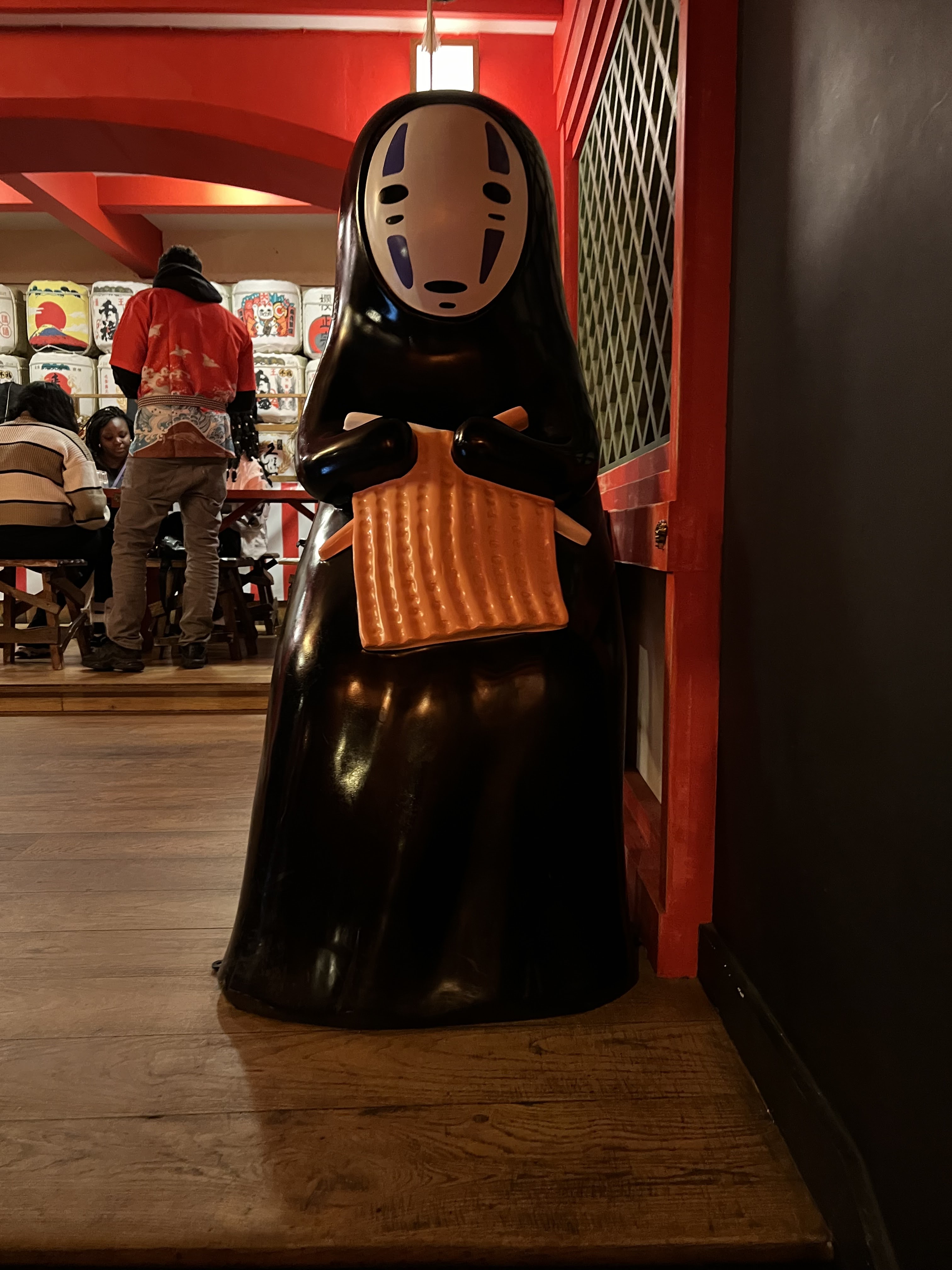 La déco !!! Tout est incroyable, c'est le quartier des plaisirs ce resto. Il faut s'attarder sur chaque élément de décor. Ce qui peut très vite être drôle, tout ce qui est japonais est utilisé, jusqu'aux pastilles de debouche évier (oui il faut ouvrir les yeux sur tout). Une véritable expérience visuelle avant tout. C'est plus qu'un resto! Le personnel est investi et aimable, ce qui ne doit pas être facile, au vu du nombre de couverts. Les plats sont bons et assez qualitatifs. Ce qui peut paraître étonnant. Ce resto n'est pas qu'un décor incroyable!