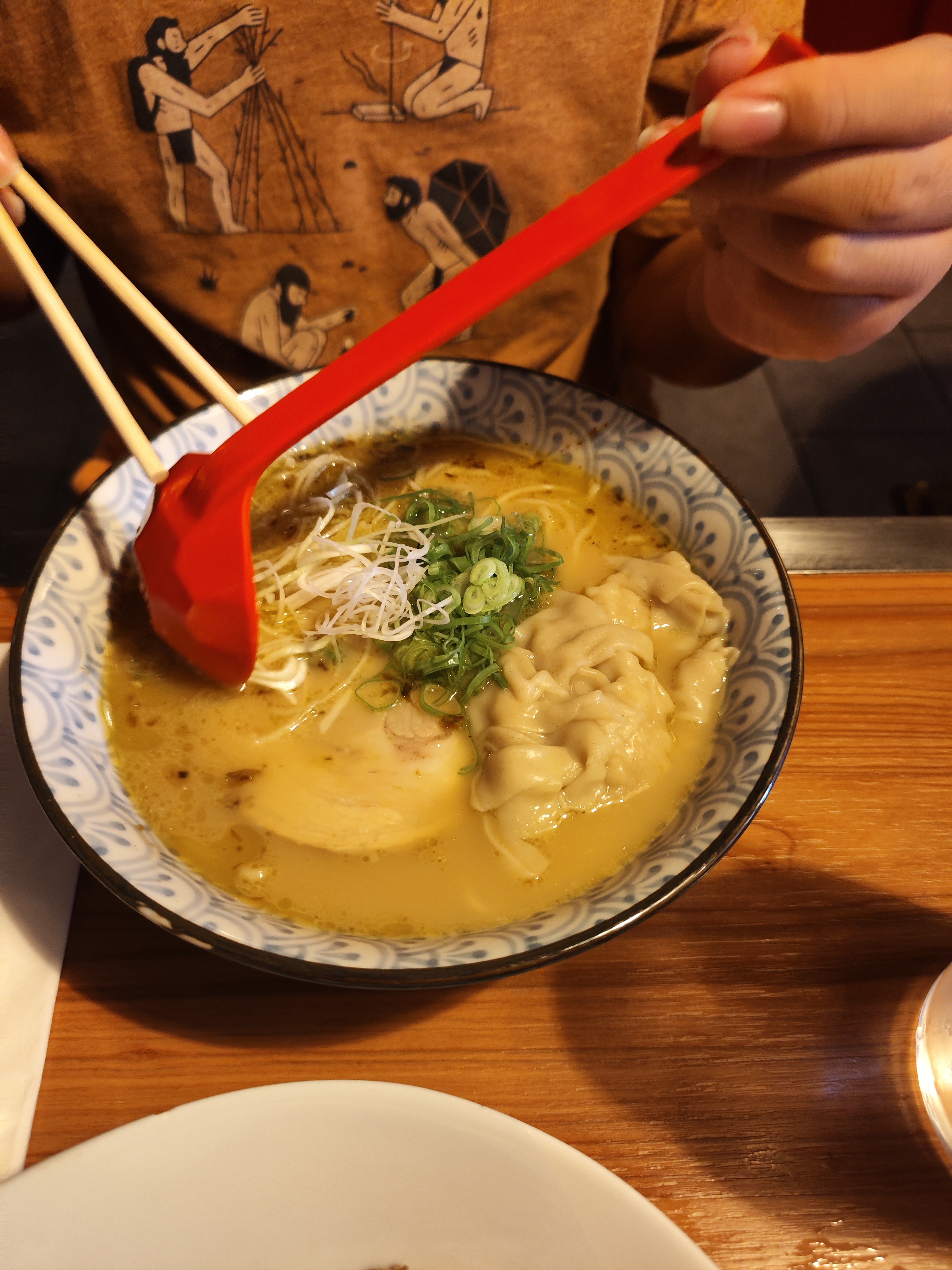Superbe endroit à l'ambiance de Myazaki. Visite familiale avec des amis. Larges tables et bouillons de très bonne qualité. Personnel enjoué et très souriant. Je recommande.