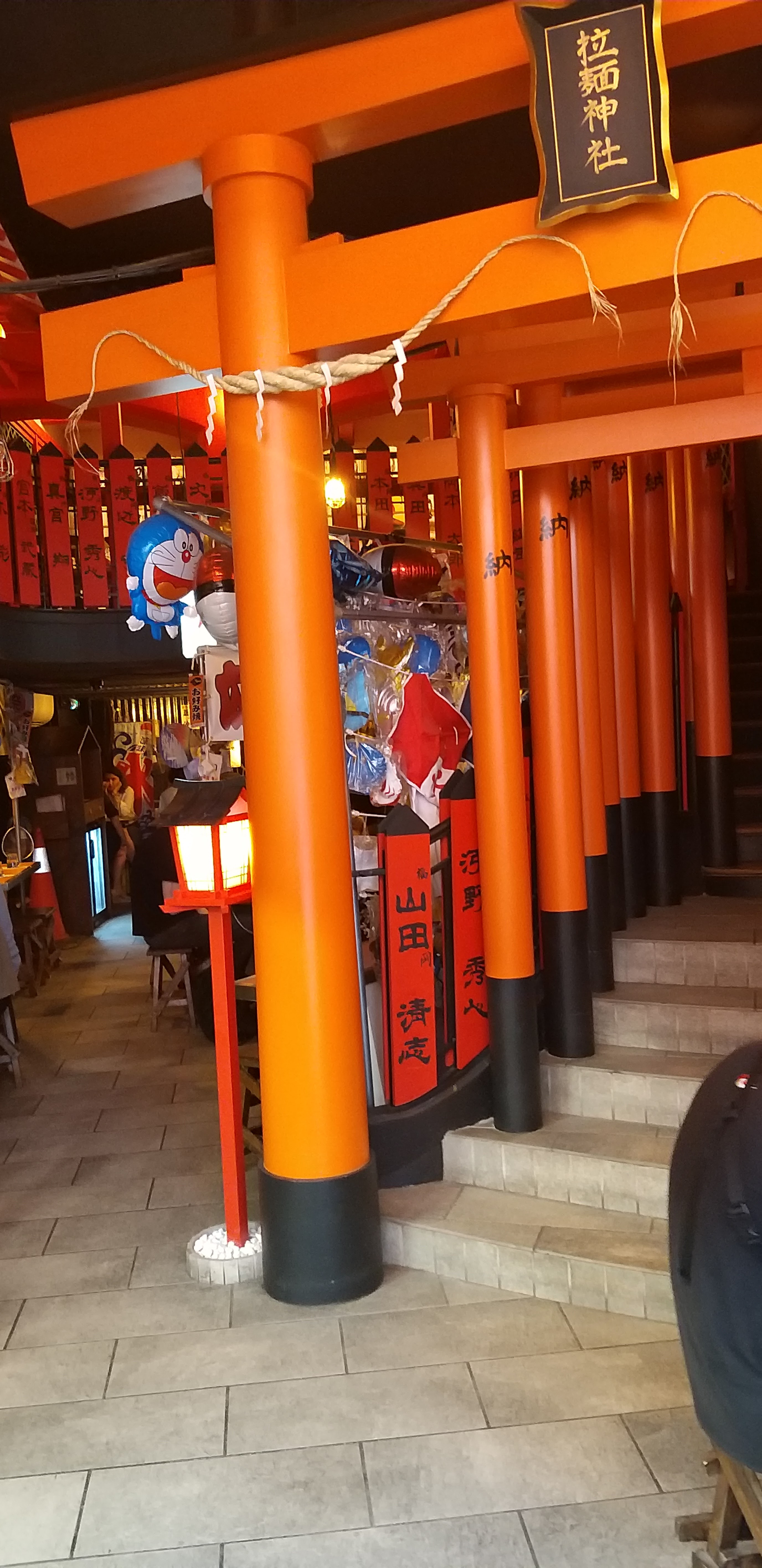 Je suis bouche bée sur la décoration 🤩 Hyper stylée sur le moindre détail, de bas en haut. Personnellement, nous étions installé a l’étage donc vu panoramique sur le restaurant. J’ai pris les escaliers et j’avais l’impression d’être à Kyoto, au Fushimi Inari - taisha. Détail également sur les tables et sur le plafond. C’est satisfaisante. Par rapport à la qualité et le prix ramen en France. C’est la moyenne. Ramen entre 12,50 à 18€, boissons également à partir de 3€ à 8€. Néanmoins, le goût n’est pas encore assez proche du ramen. Le bouillon devrait être plus épais et la pate de nouille également. Un chouïa déçu, pour la saveur qui ne sois pas aussi impactant que la décoration du lieux. Toutefois si vous êtes des amateurs et amatrices de ramen/Japon, c’est un bon restaurent. Petit bémol au 1er étage, il fait hyper chaud en + de la vapeur du ramen qui sors. Sinon restaurent très instagram, il y a une hyper donc compter une attente de 20min de queue. Ps : ils ne prennent pas la carte Swile