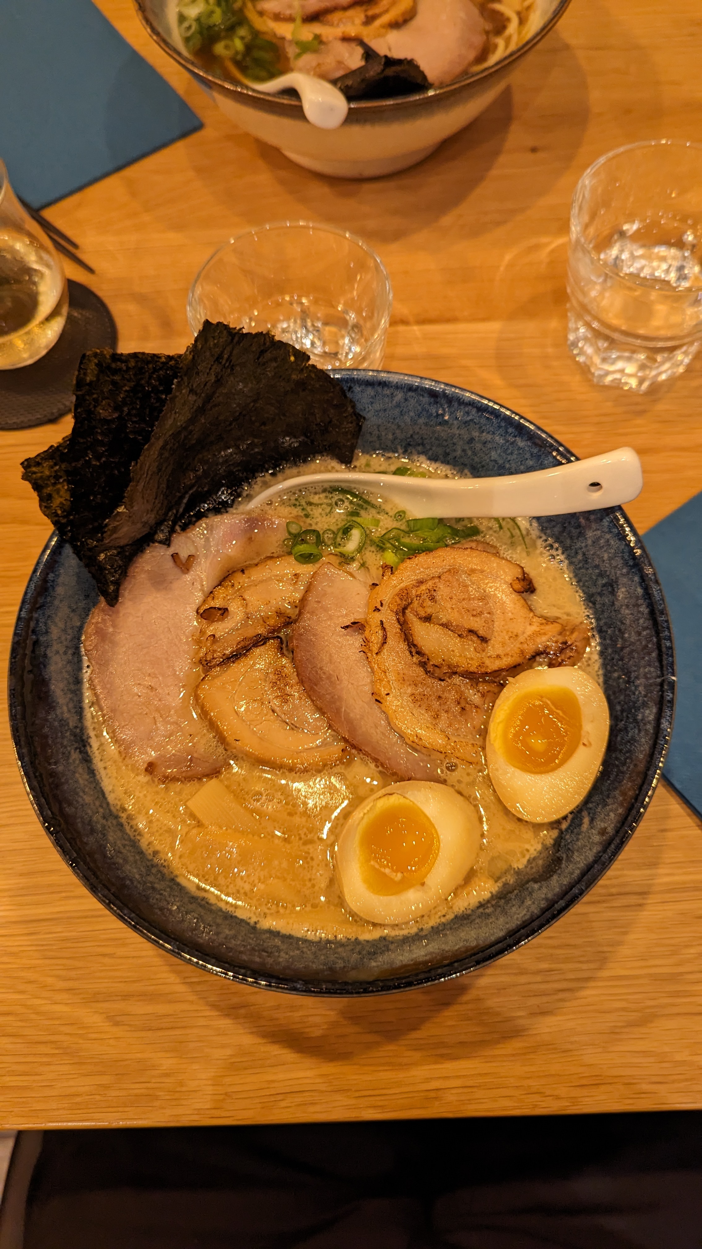 Deuxième fois que j'y vais et toujours aussi délicieux ! Les gyozas sont savoureux, très loin du surgelé qu'on peut vous servir dans d'autres restaurants. Les ramens sont succulents, mention spéciale pour le tonkotsu shoyu ramen ! Pour finir, une glace au sésame noir surprenante et délicieuse.