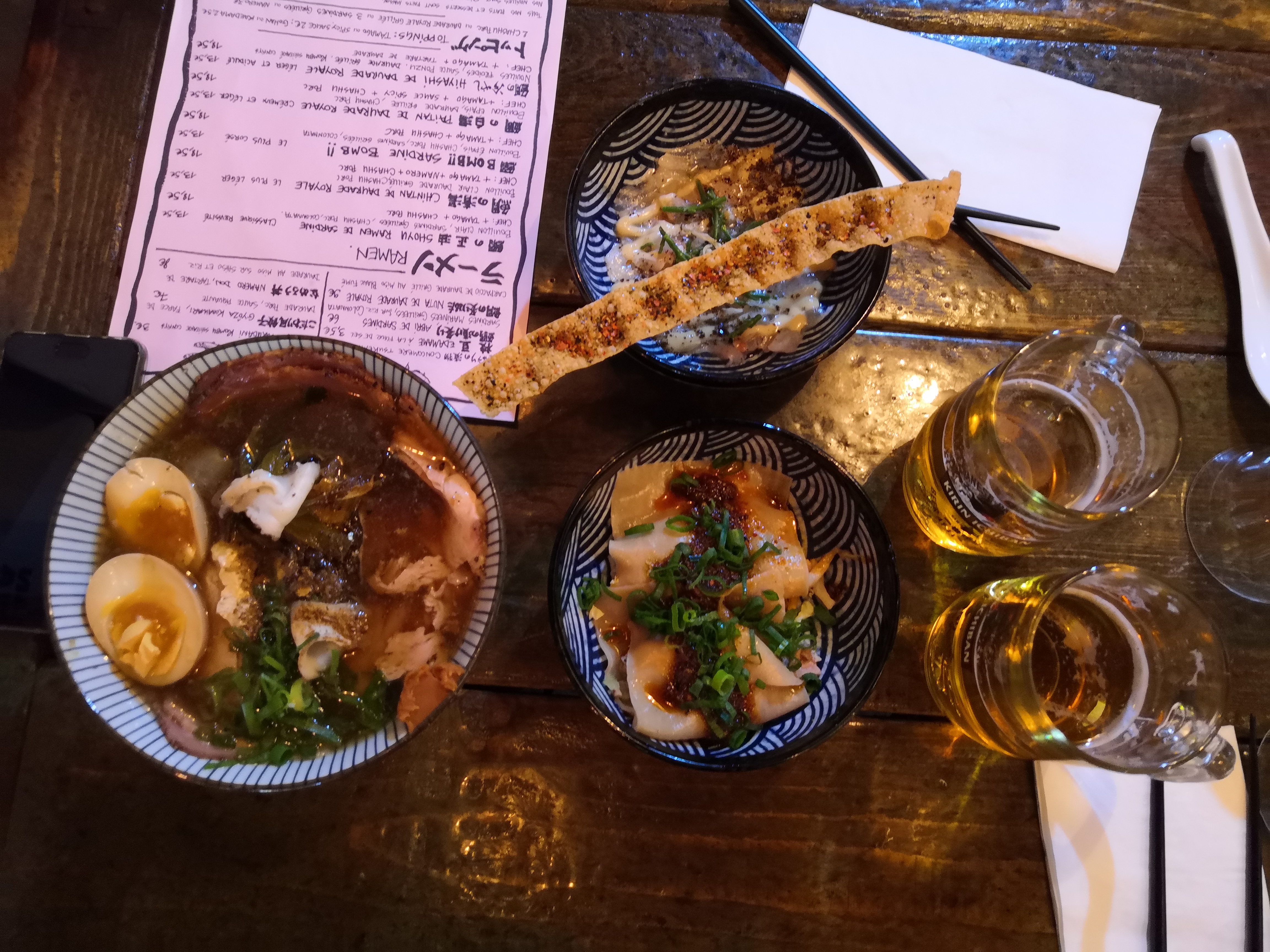 L’expérience est vraiment folle ! Les ramens sont incroyables et les ingrédients utilisés sont vraiment de qualité, la viande et le poisson fondait dans la bouche et le bouillon était vraiment excellent ! Petit bémol par rapport au manque de place, j’avais déjà un peu repéré le lieu et je savais que le but de l’expérience était d’être comme dans un marché de poisson, mais on était vraiment trop serré impossible de faire le moindre mouvement sans toucher quelqu’un. Il faut donc être relativement à l’aise avec la proximité et voir cela comme une expérience culinaire. Mais sinon tout est parfait !