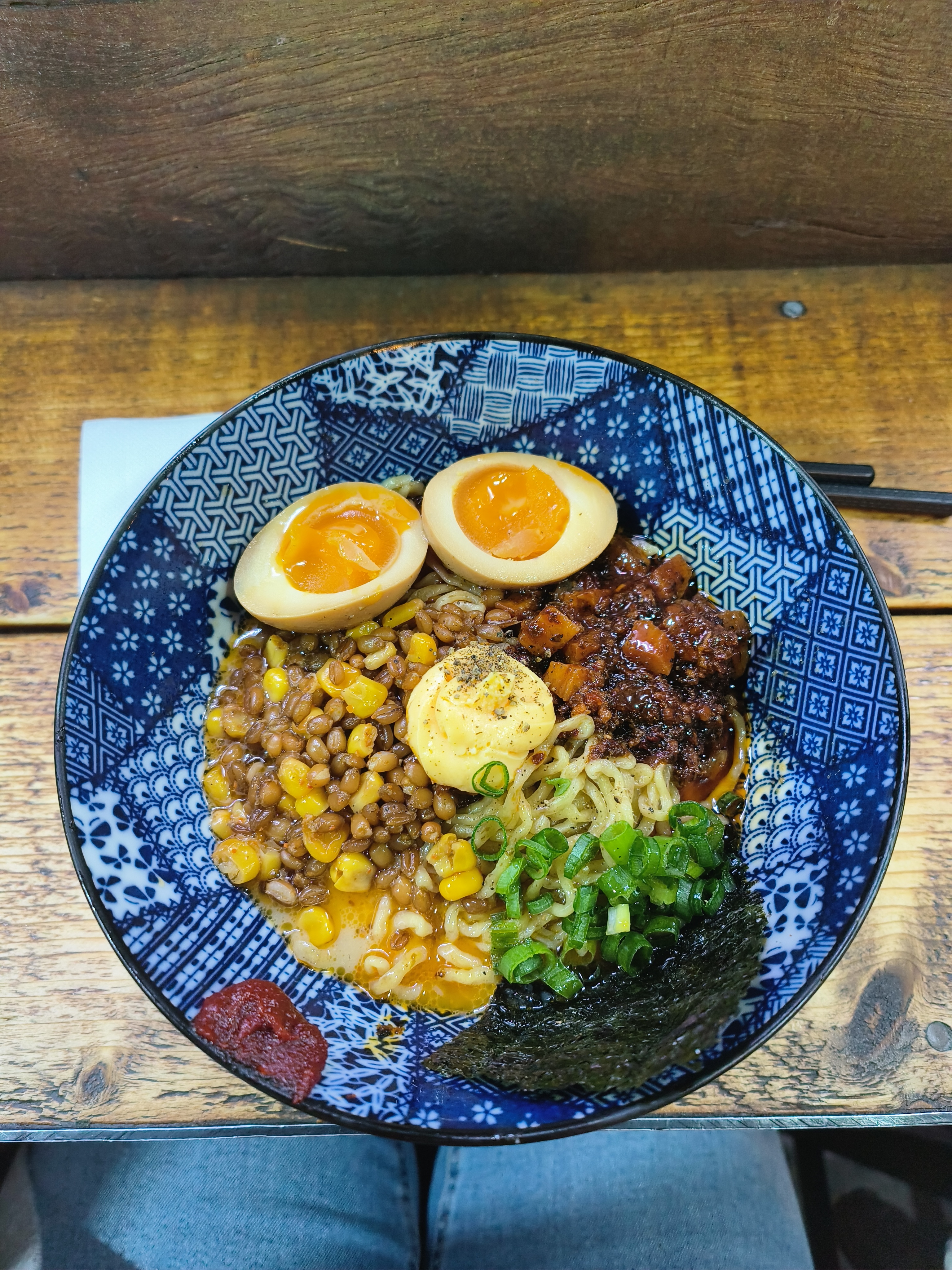 Expérience a faire une fois surtout pour le cadre déjanté du restaurant. Les ramen sont copieusement servies mais ce ne sont clairement pas mes meilleurs ramen.. disons correcte pr le prix.