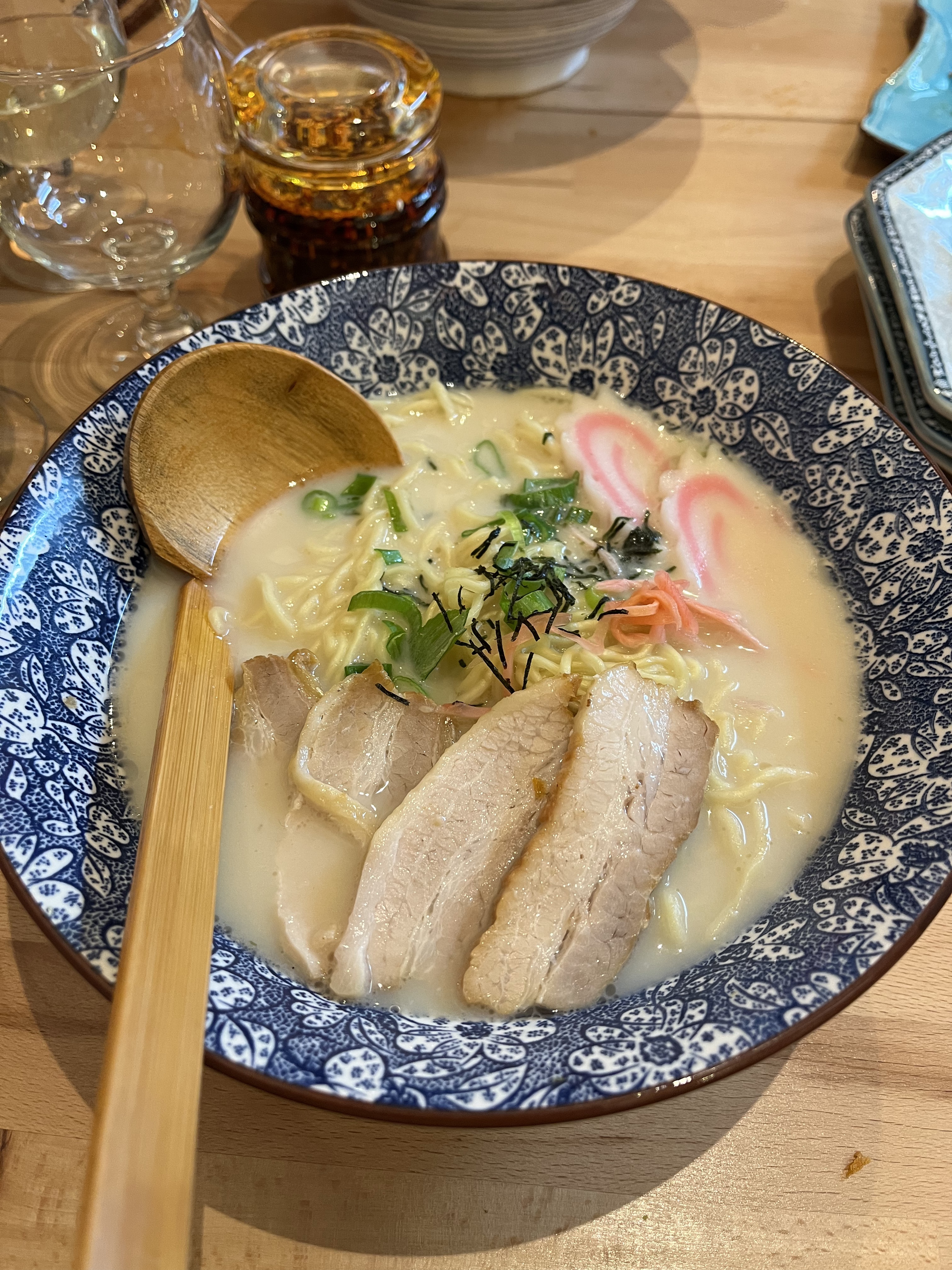 Je recommande fortement les entrées ! Notamment le beignet chinois au bœuf ! Au niveau du ramen, le bouillon Tonkotsu est plutôt authentique. En revanche le porc et l’œuf m’ont légèrement déçu mais ça reste quand même très positif ! Service un peu confus mais personnel sympathique ! Le thé au jasmin rajoute un plus au repas.