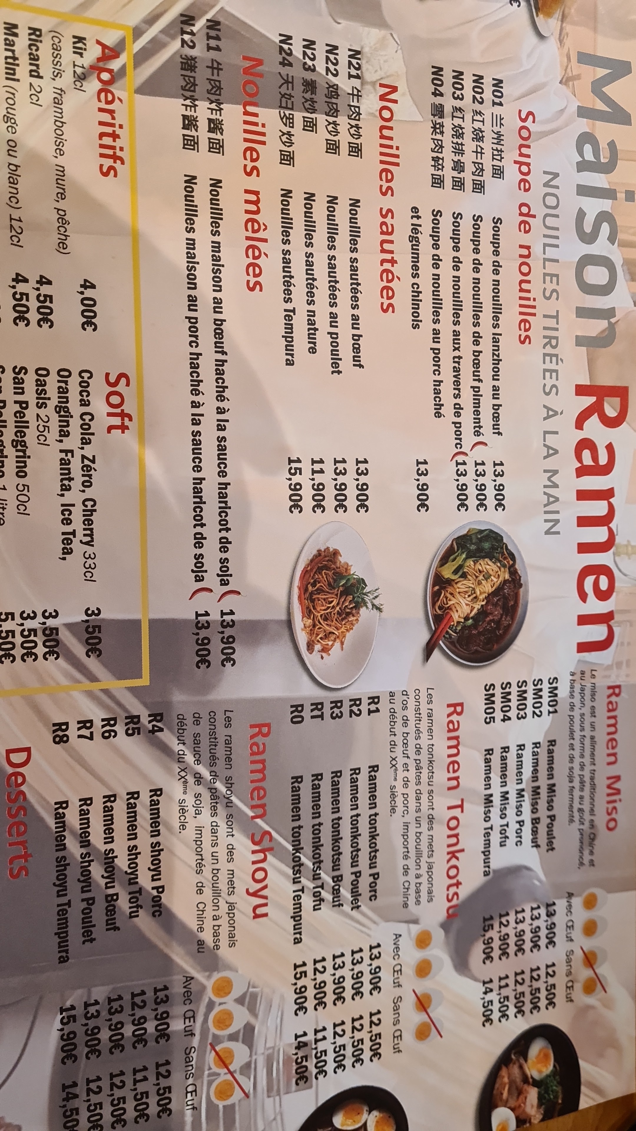 On adooore! Nous avons fait plusieurs restaurants de Ramen sur Lille et maison ramen reste notre préféré🤗 Nous aimons la diversité du choix de ramen, le goût des bouillons, la gentillesse du personnel. Boeuf, poulet ou porc, ils sont tous bons...avec 1 oeuf bien sûr! Les entrées et les plats sont aussi excellents! Si vous prenez une entrée et que vous ne finissez pas votre ramen, ce qui m’arrive en général, vous pourrez emporter le reste😉