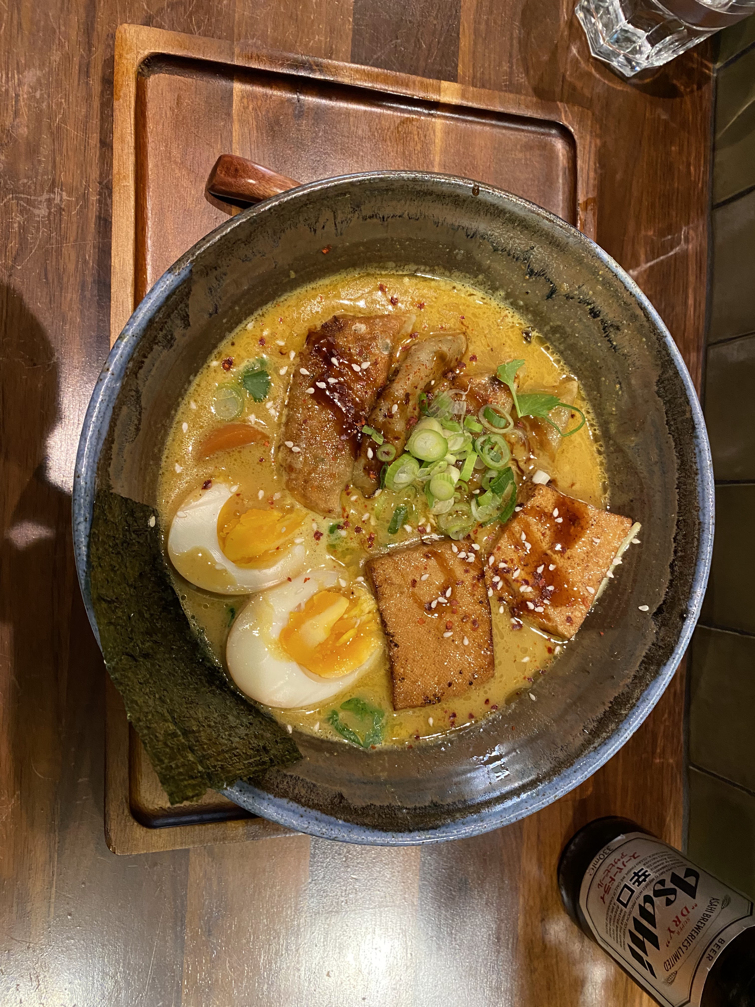 Le meilleur ramen végétarien que j'ai mangé !! Le bouillon est tout simplement excellent et je ne parle même pas des raviolis délicieuses