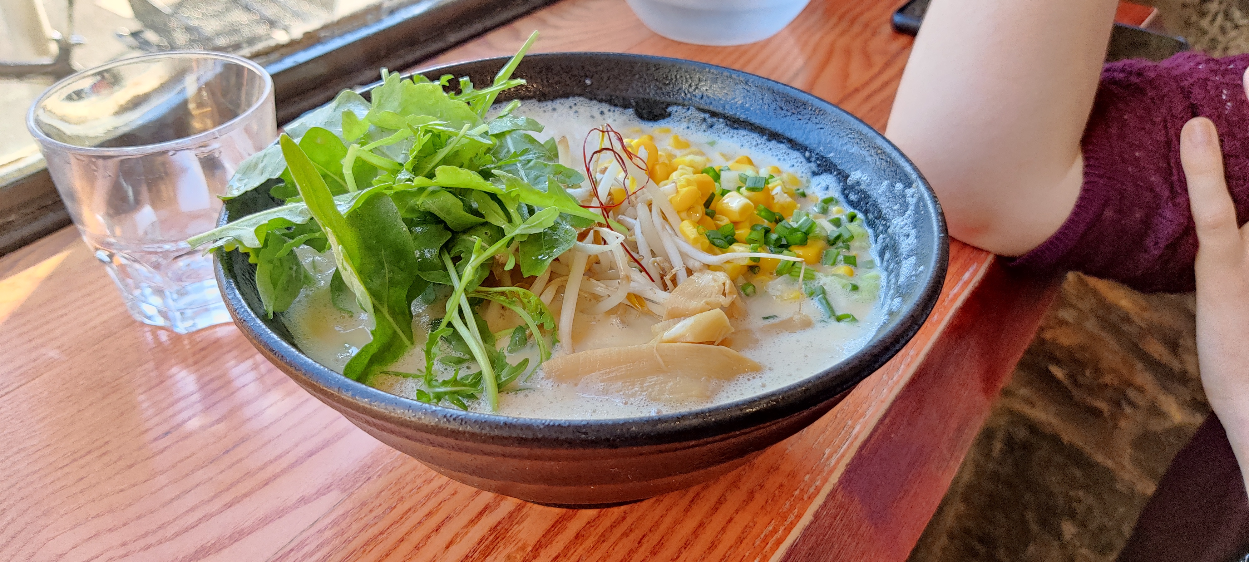 J'étais content de tomber sur un ramen végétarien, mais c'était beaucoup trop salé ! Nous avons malheureusement eu du mal à finir nos bols. Peut-être n'était-ce pas le bon jour mais au final plutôt déçu du repas 🙁