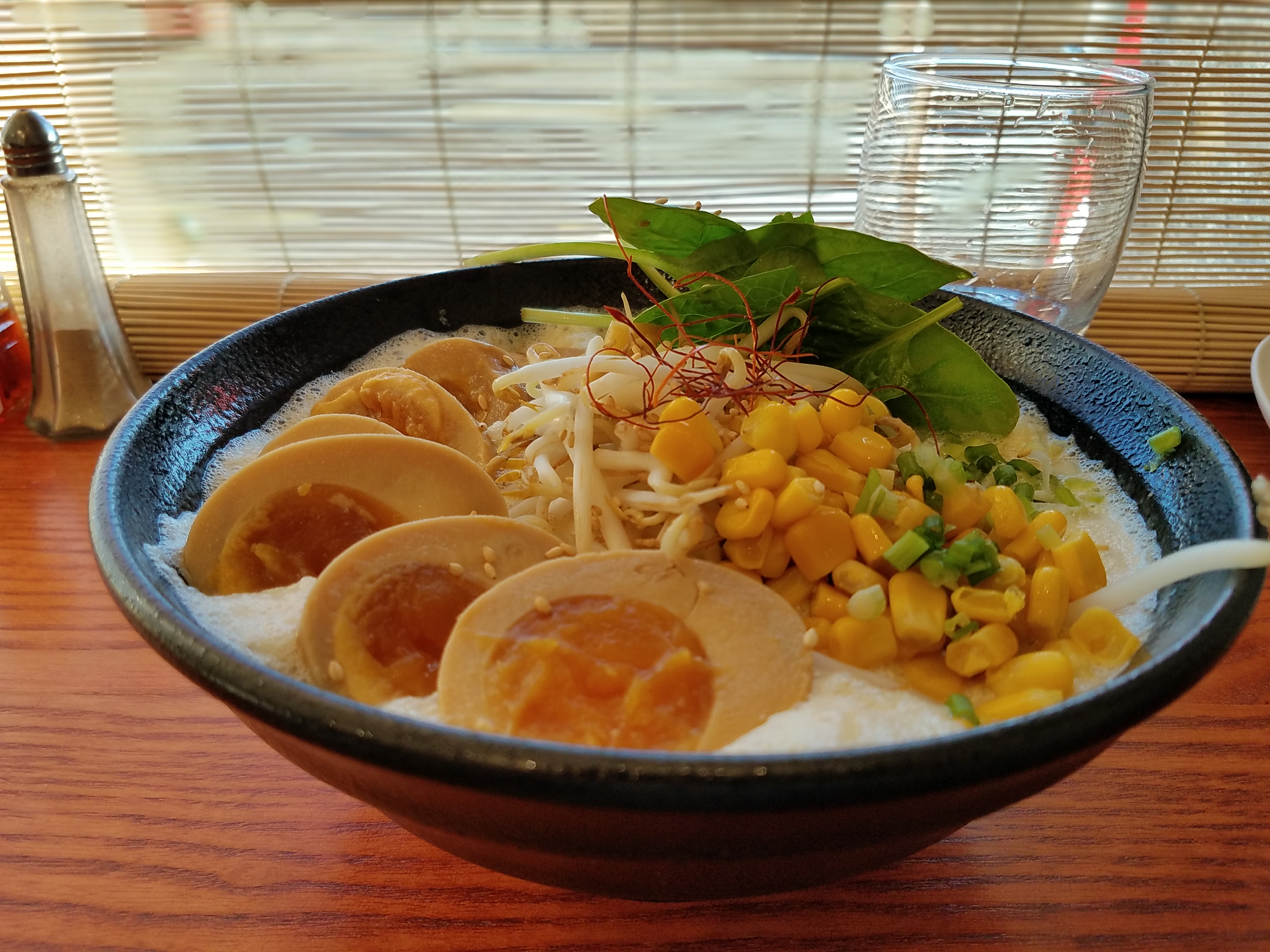 Bons ramens, service rapide et très agréable, serveuses très gentilles. Bons ramens, bouillon goûteux. Points faibles : endroit très petit, les oeufs manquent de saveur pas assez mariné. Un demi oeuf dans le ramen végétarien c'est vraiment trop peu comme protéines. Il faudrait au moins un oeuf entier pour compenser.