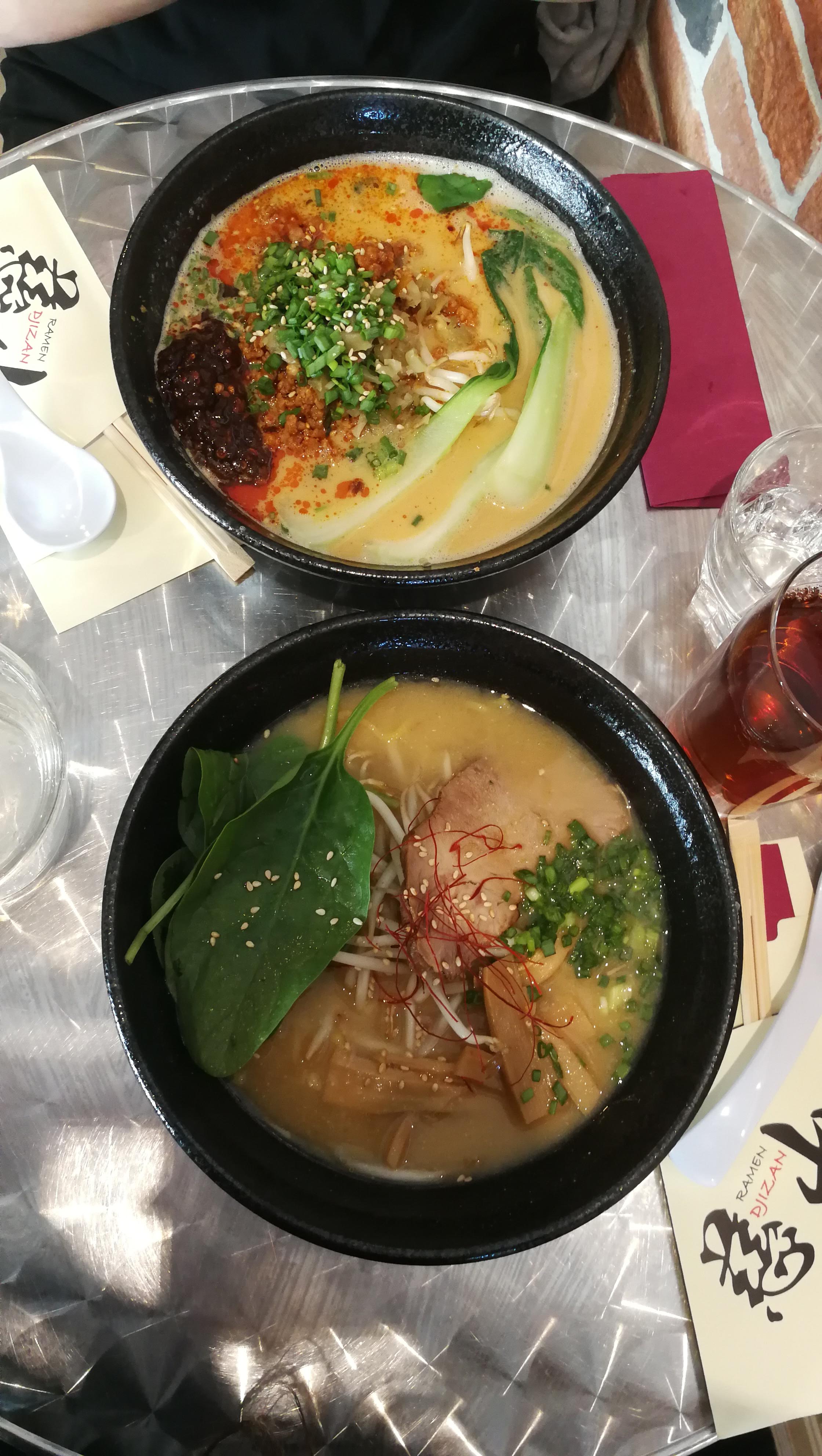 Restaurant à ramen du centre de Lyon. Attention, lieu prisé, sans réservation possible...de fait, penser à arriver un peu avant l'ouverture, ou prévoyez un peu d'attente.Peu de place, manger chez Ramen Djizan, ça se mérite! Chouette endroit, jolie vue, service agréable, carte courte, plats typiques. Nous avons opté pour des guyozas porcs à partager puis ramen mer pour l'un et ramen soja pour l'autre. Le tout très bien cuisiné, les plats sont fins et plein de saveurs, parfait! 😁