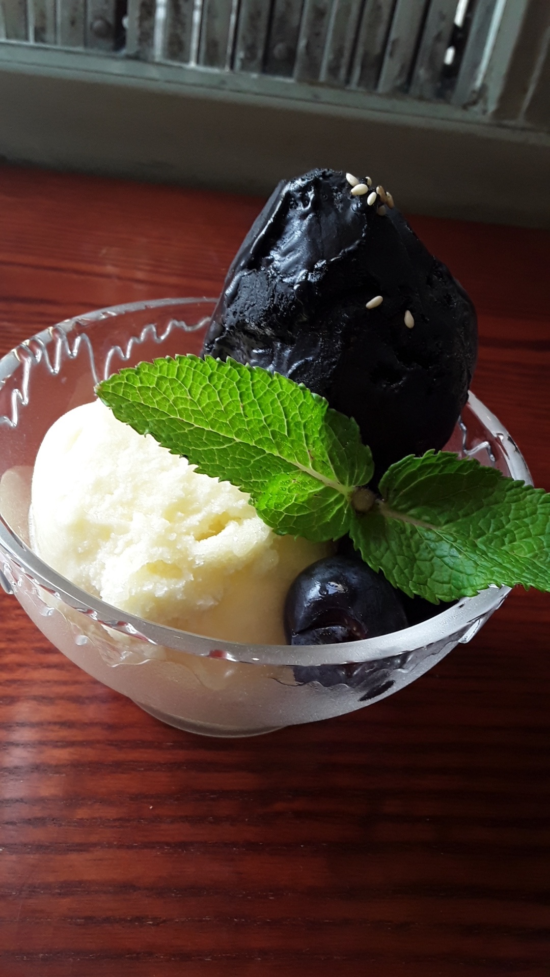 Je n'étais jamais allé dans un vrai restau japonnais (les chaînes ne comptent pas...) tenu par des japonnais avec que des gens qui parlent japonnais (et français aussi, accessoirement), déjà tout de suite, on est dans l'ambiance. J'ai pu goûter différentes choses, le thé Oolong pour commencer, en cannette, un thé froid tout simplement, rien de spécial à signaler. Puis les gyozas St Jacques/crevettes, super bonnes, grillées juste comme il faut. Le shio ramen, je tiens à dire que j'en avais tout simplement jamais mangé et comme attendu, bah c'est très bon ! Une boule de glace citron yuzu et une autre sésame noir, tout simplement exquise, c'est ce que j'ai le plus aimé dans ce repas qui était pourtant de haut vol. Et enfin une crème brûlée au thé, qui avait le goût du thé, qui était bien bonne, elle aussi... Bref, tentez l'expérience, ça vaut le coup !