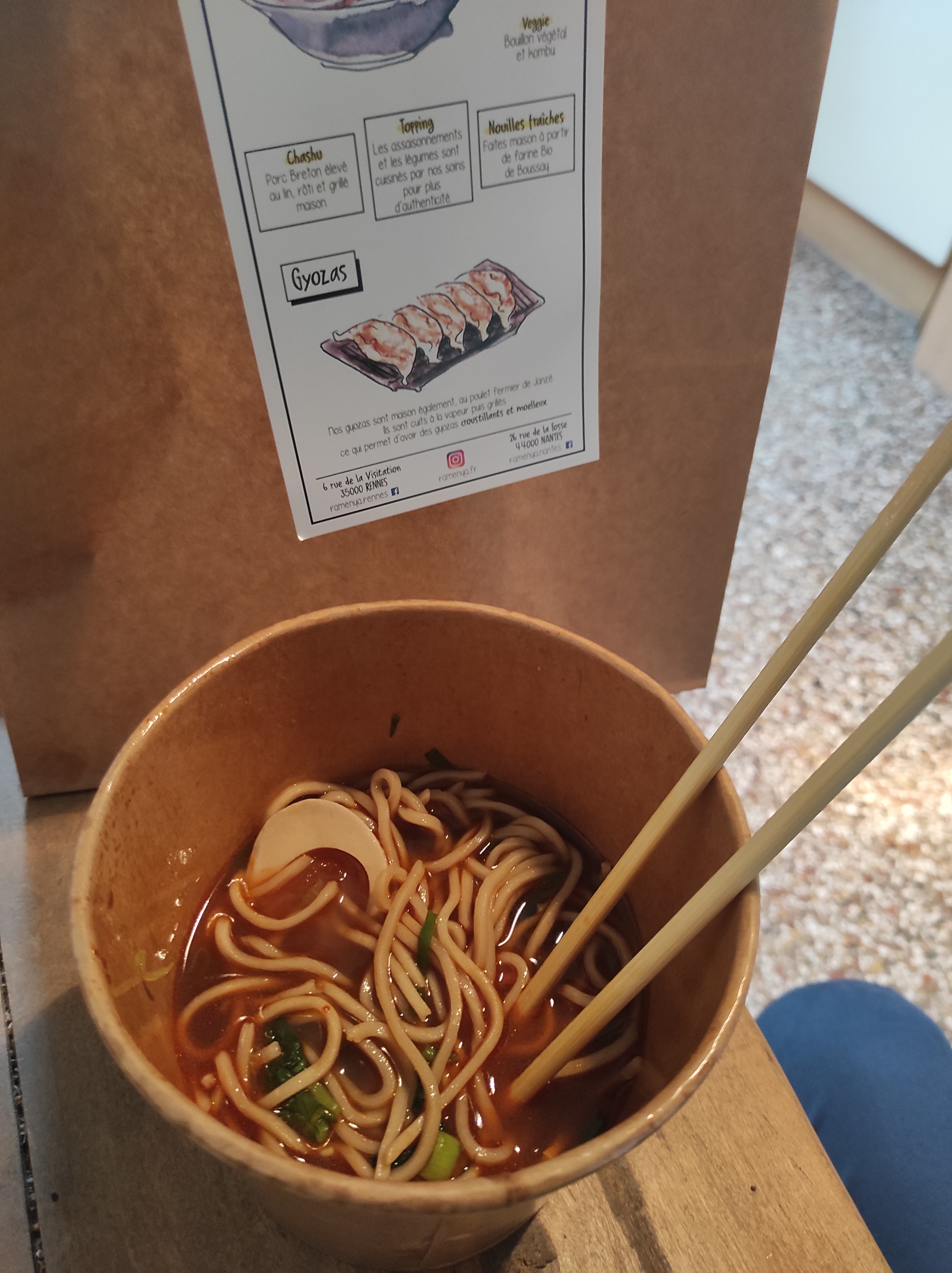 Bonjour Gwendoline, Merci pour votre avis et commentaire 😊 ! Nous sommes ravis que nos Ramen vous ont plu et d'avoir été une belle découverte 🥰. Sachez que les nouilles, les bouillons, les gyoza et même les sauces sont faits maison par nos soins. Nous utilisons essentiellement des produits locaux. Passez une belle journée et au plaisir de vous revoir, Ramen Ya