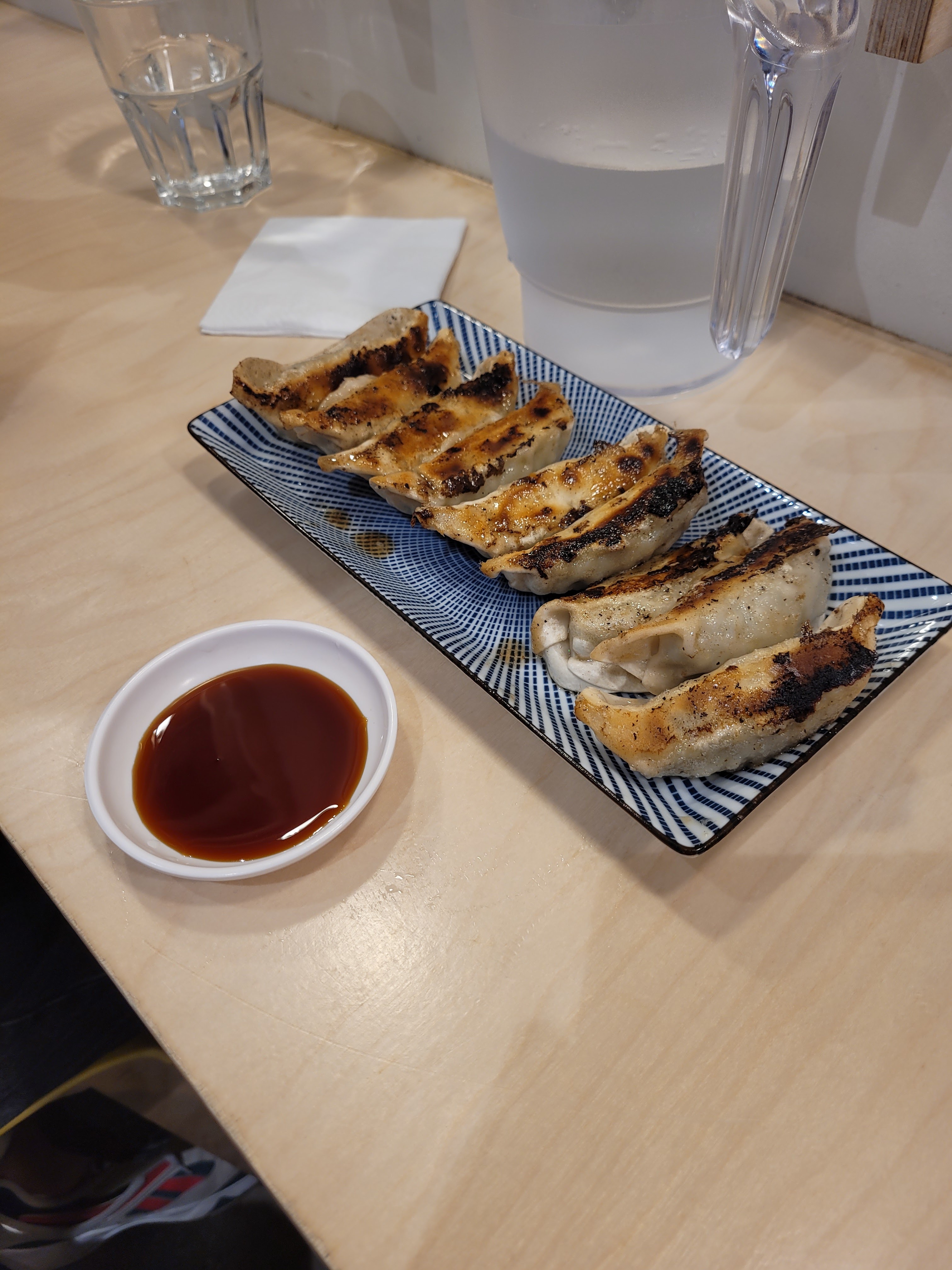 Une ambiance très agréable, on sent que les employés font de leurs mieux pour respecter l'ambiance des restaurants japonais en criant les gyoza et en les répétant en cœur. Le fait de choisir l'épaisseur des nouilles et leurs cuissons, tout en sachant qu'il ne s'agit pas de nouilles en sachet a 0,15ctm comme chez Mandoo, ça représente un plus non négligeable. La carte est très belle, mais pas trop , on a le choix sans avoir à se perdre dans une multitudes de plat stupide et c'est très agréable. Les gyoza sont vraiment délicieux, rien a dire , ça n'est pas mal cuit et leurs présentation est parfaite. Le seule bémol que l'on peut trouver, c'est qu'il y a toujours beaucoup trop de monde, sans doute du a leurs succès , il est donc très compliqué de s'y installer au calme durant les heures de rush . Le mieux est d'y aller vers 17h-18h50, ce qui est dommage mais les plus courageux ou les plus affamé n'y verrons aucun inconvénients. Bref on adore