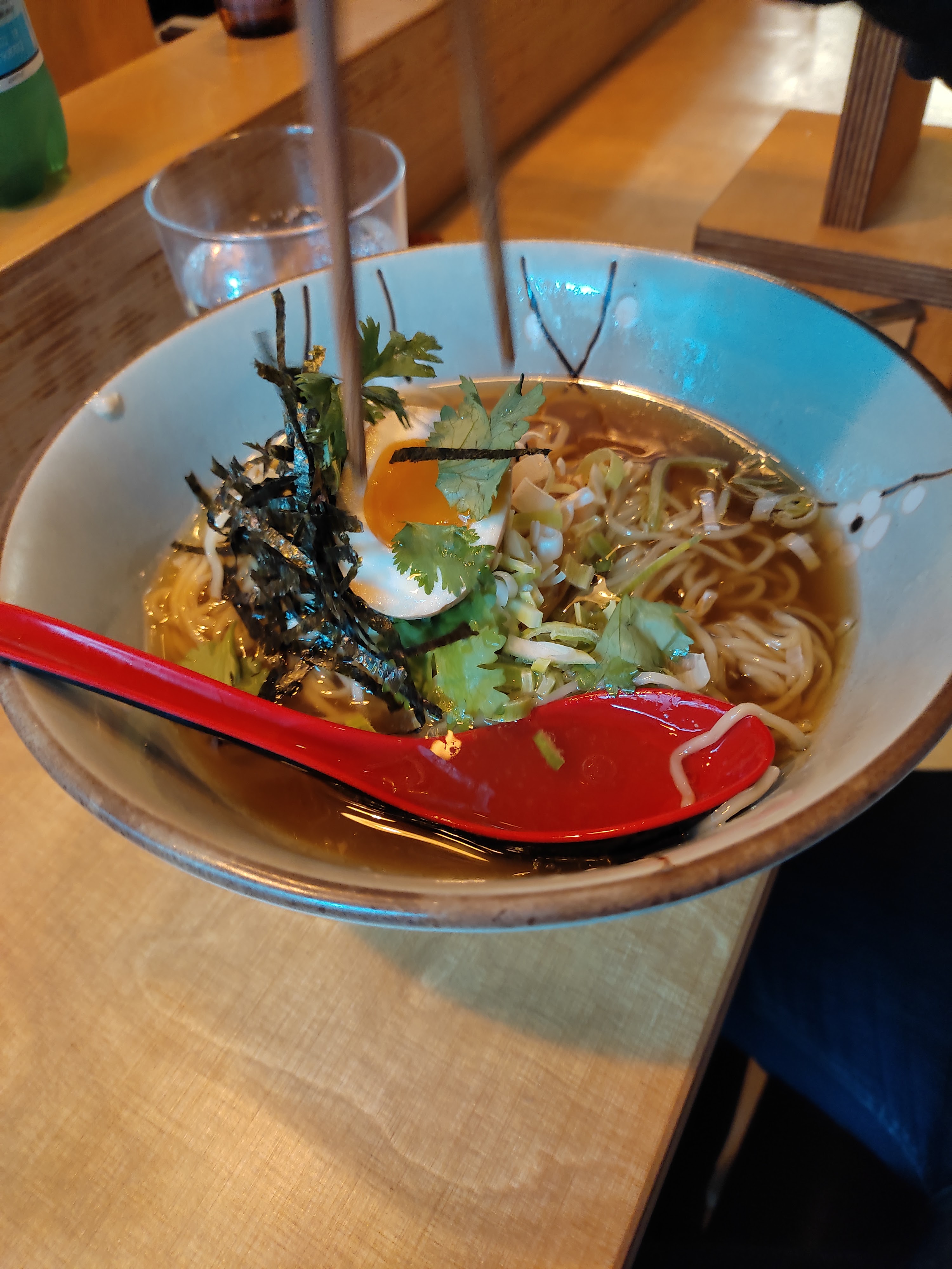 En voyage dans à Vannes entre les deux week-end du Hellfest, j'ai eu le plaisir de découvrir cette adresse. Et c'était clairement le meilleur repas de mes vacances ! Accueil et explications très pro, et surtout un bol de ramen incroyable ! Viande fondante, œuf parfaitement cuit et mariné, bouillon délicieux et surtout un équilibre des saveurs parfait. Si j'ai l'occasion de revenir à Vannes, je reviendrai à coup sûr. Un vrai bar à ramen !
