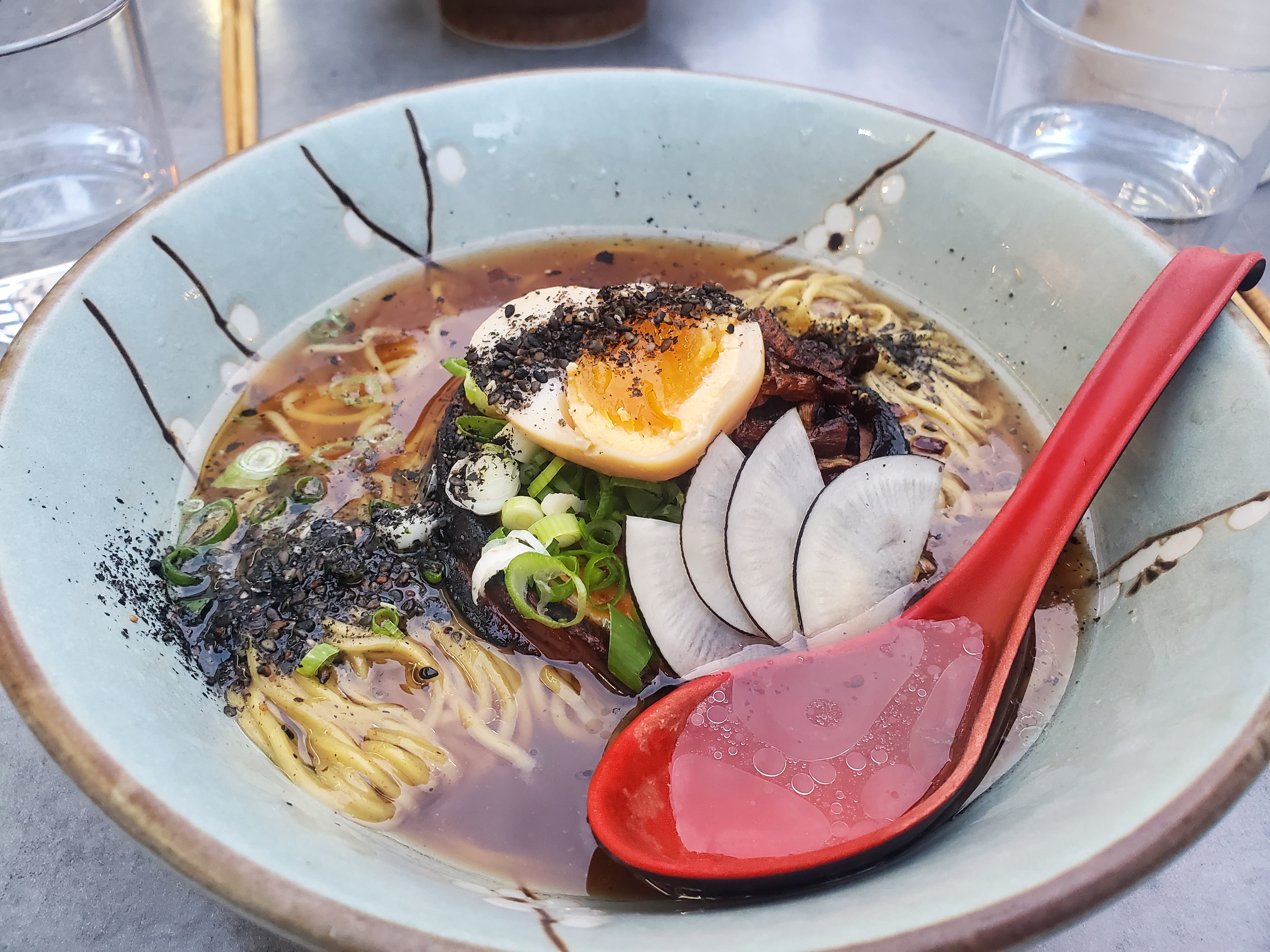 Le resto a été pensé pour vous transporter au Japon avec des places face à la cuisine depuis lesquelles vous pouvez assister à la préparation de vos ramens. La cuisine est délicieuse, les goûts sont subtils et tout en nuances. Je ne sais pas si c’est ça le « umami » mais nous avons littéralement pris une claque culinaire de l’entrée au dessert.