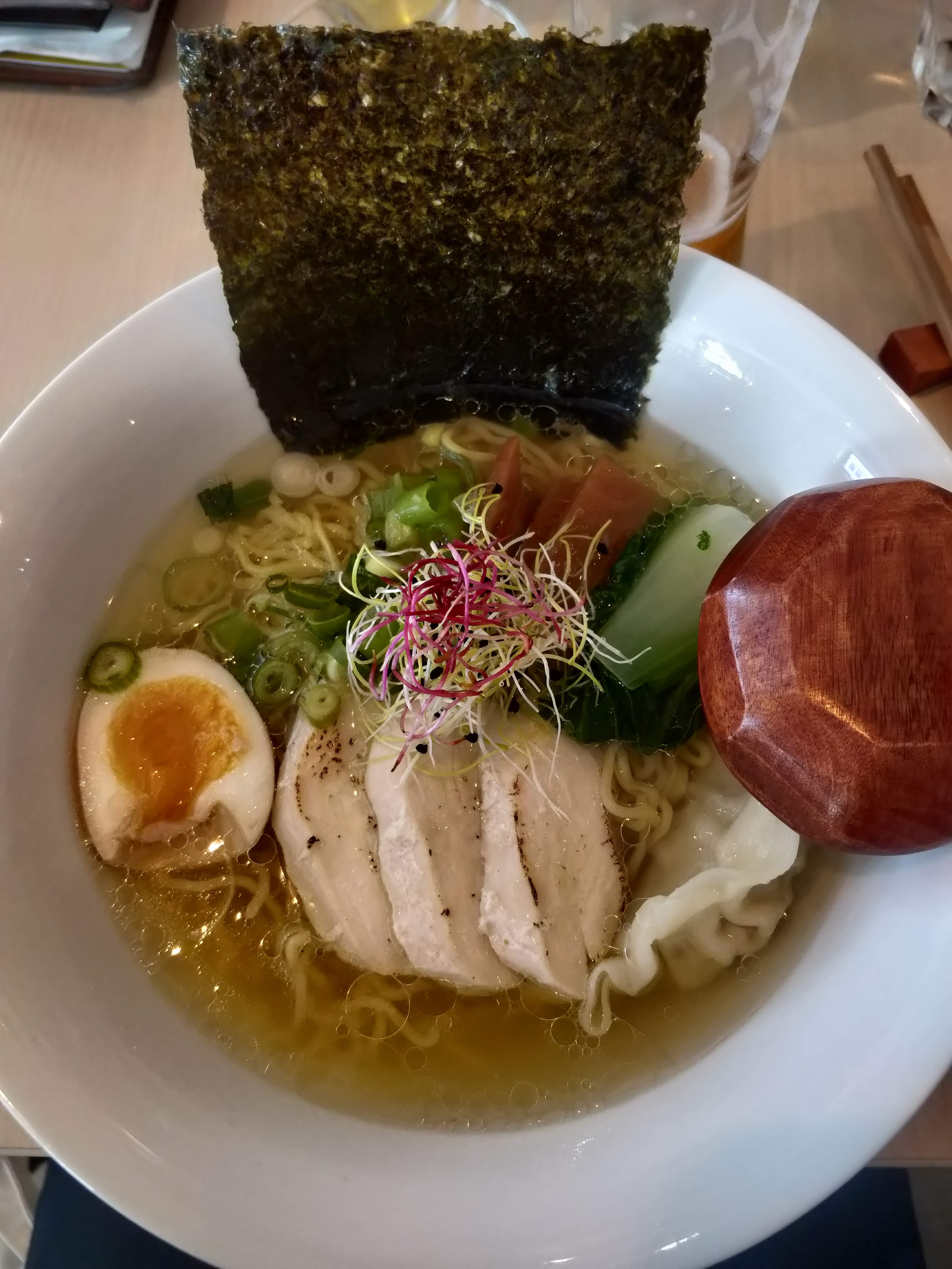Pour résumer : excellent ! Sans aucun doute dans mon top 3 des ramen, même par rapport à ceux mangés au Japon. Franchement délicieux (celui au sésame). Les entrées étaient également exquises (takoyaki, karaage et edamame à l'ail et Wasabi). Je recommande ce restaurant sans aucun problème et j'y reviendrai avec un énorme plaisir !