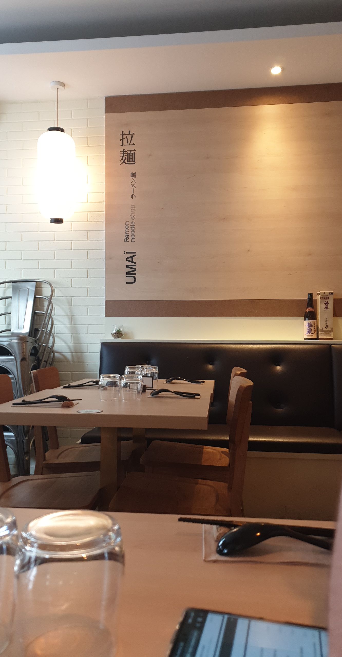 Le Umaï Ramen vous accueille chaleureusement, les deux personnes à qui j’eus affaire sont sympa, au téléphone et au restaurant Concernant la décoration, elle est très épurée et agréable a regarder elle nous permet de voyager dans une ambiance japonaise minimaliste rare à trouver dans notre ville , la vaisselle est elle aussi simple et bien choisie, de belles cuillères en bois par ailleurs. Le plus important le plat ; les nouilles sont bonnes et le reste aussi, il manque peut être d’accompagnement dans ce ramen, le bouillon est peut être trop salé et pas assez assaisonné, nous avons été plusieurs à souligner ceci, concernant les gyosas rien à dire un goût doux. Nous pouvons dont dire que c’est un beau restaurant, et une belle introduction au ramens, à un tarif tout à fait correct pour ce type de nourriture, si l’on aime les douces saveurs mais il reste peut être a parfaire, vous avez tout mon soutiens !