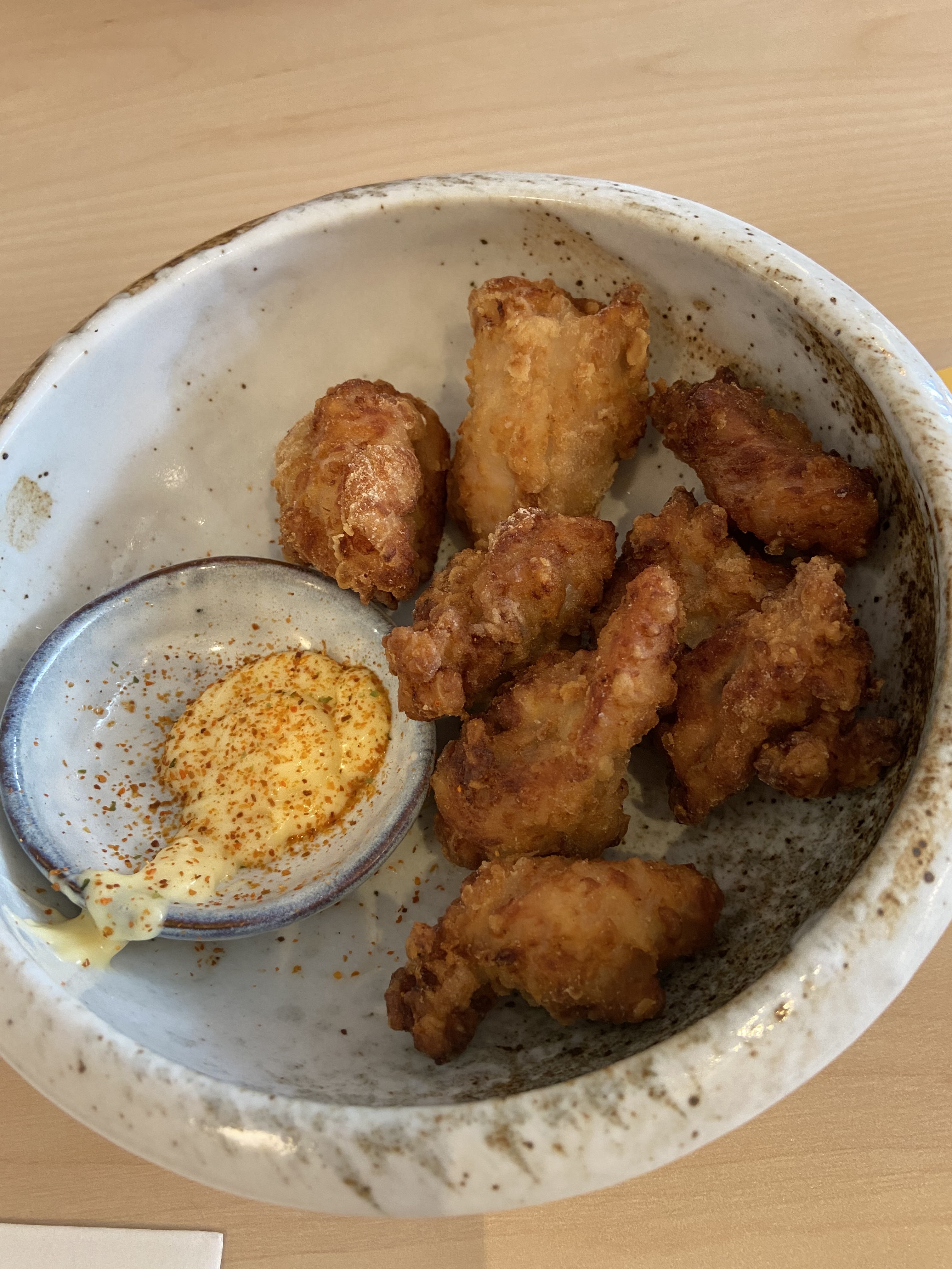 Je suis venu avec des amis en novembre dernier. J'ai pris en entrée un Karaage qui sont des pièces de poulets panés qui était accompagné d'une mayonnaise. Le poulet était bien juteux et croustillant j'ai adoré. En plat j'ai pris TANTAN Ramen qui était épicé. La viande hachée qui s'y trouve à l'intérieur la fait penser à la bolognaise. Le bouillon était très bon c'est une bonne adresse et l'atmosphère est sympa je recommande