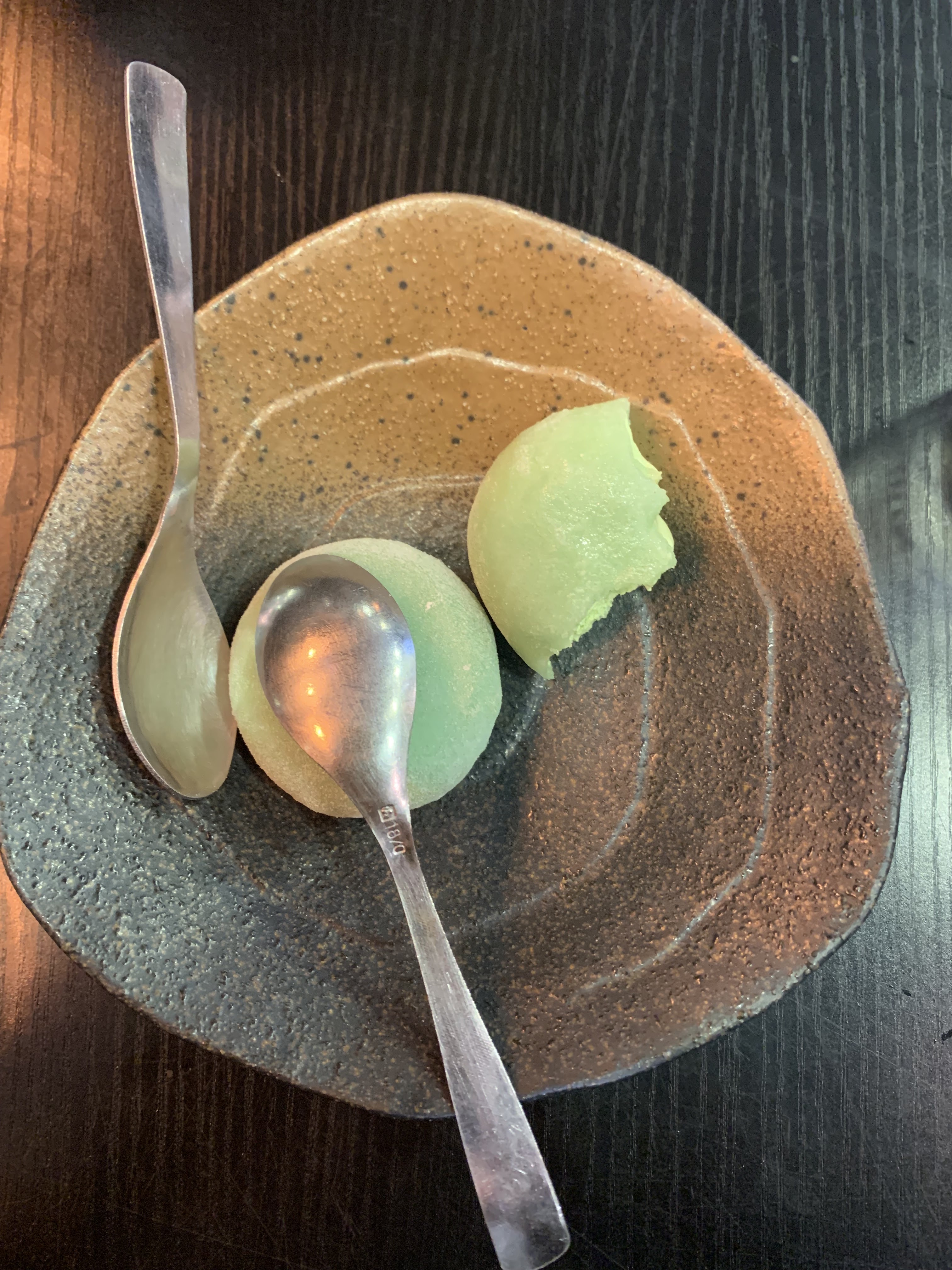 Poulet frit absolument délicieux, à ne pas rater !! Ramen x2 gorgeous bœuf et végétarien :) accompagnés de Kirin. Presque parfait, si ce n’est le mochi à changer absolument car pas digne de l’endroit (il y a d’ailleurs quelques excellentes sources de mochi à proximité). A part cela, une excellente soirée !!