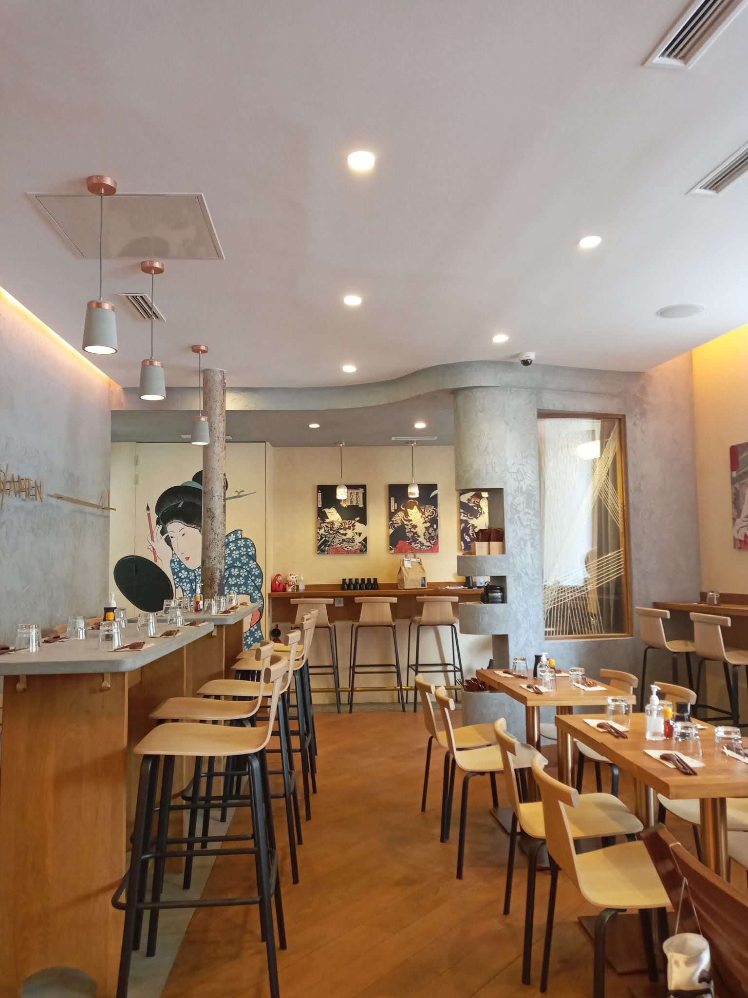 Nous sommes allés manger un soir dans ce restaurant. La salle était vide, mais on nous a placé au bar sur des chaises hautes très inconfortables. La salle est d'ailleurs restée vide tout au long de la soirée. Ensuite, il se sont trompés dans la commande du ramen. L attente a été longue. Le thé demandé n'est pas arrivé au moment demandé. Et pour finir les prix de l'addition ne correspondent à ceux de la carte. Le manager s'est à peine excuser.... Sincèrement le service est vraiment mauvais. Quant à la nourriture, les ramens sont bons mais manque de goût. Et les prix sont excessifs.