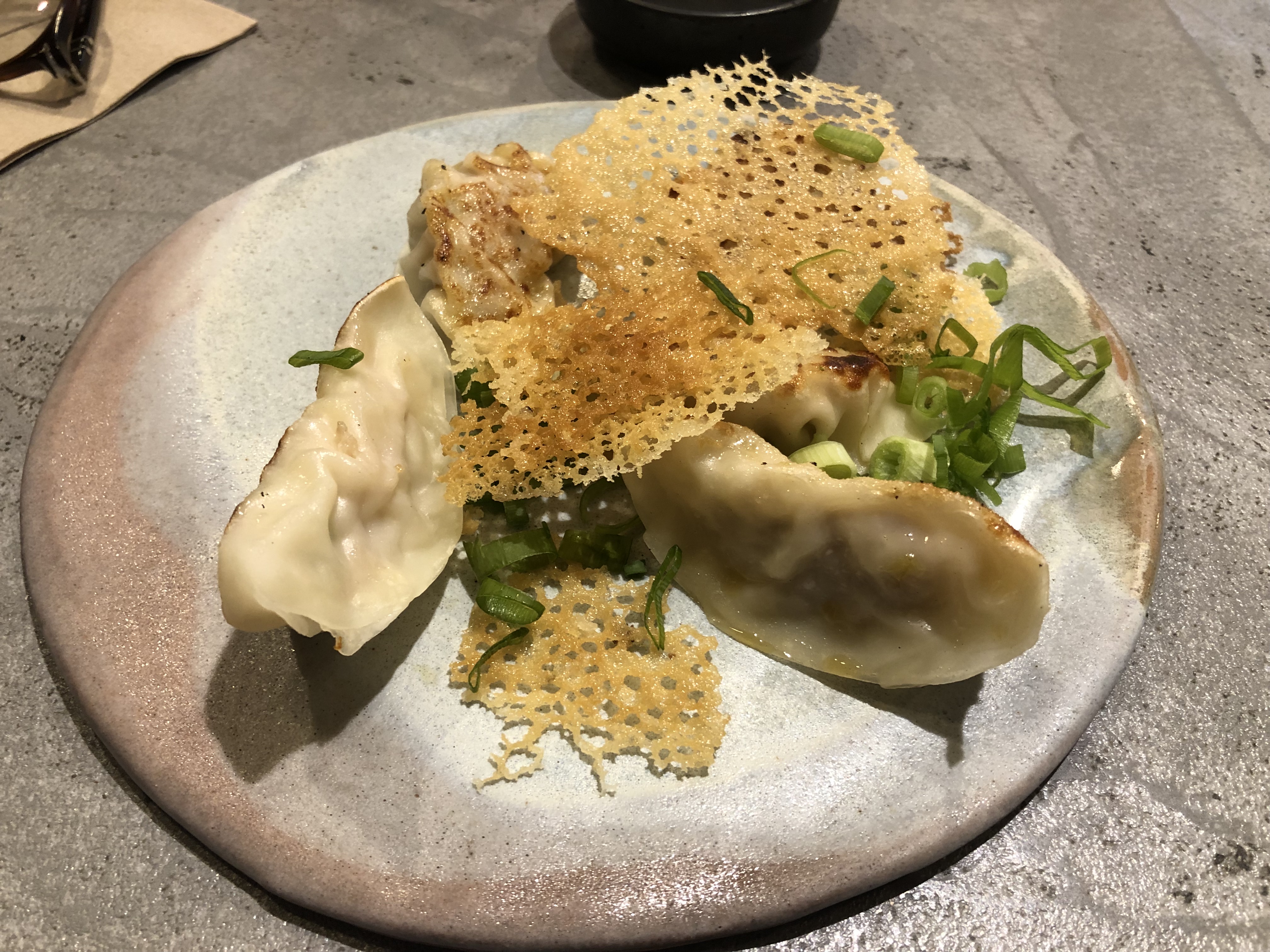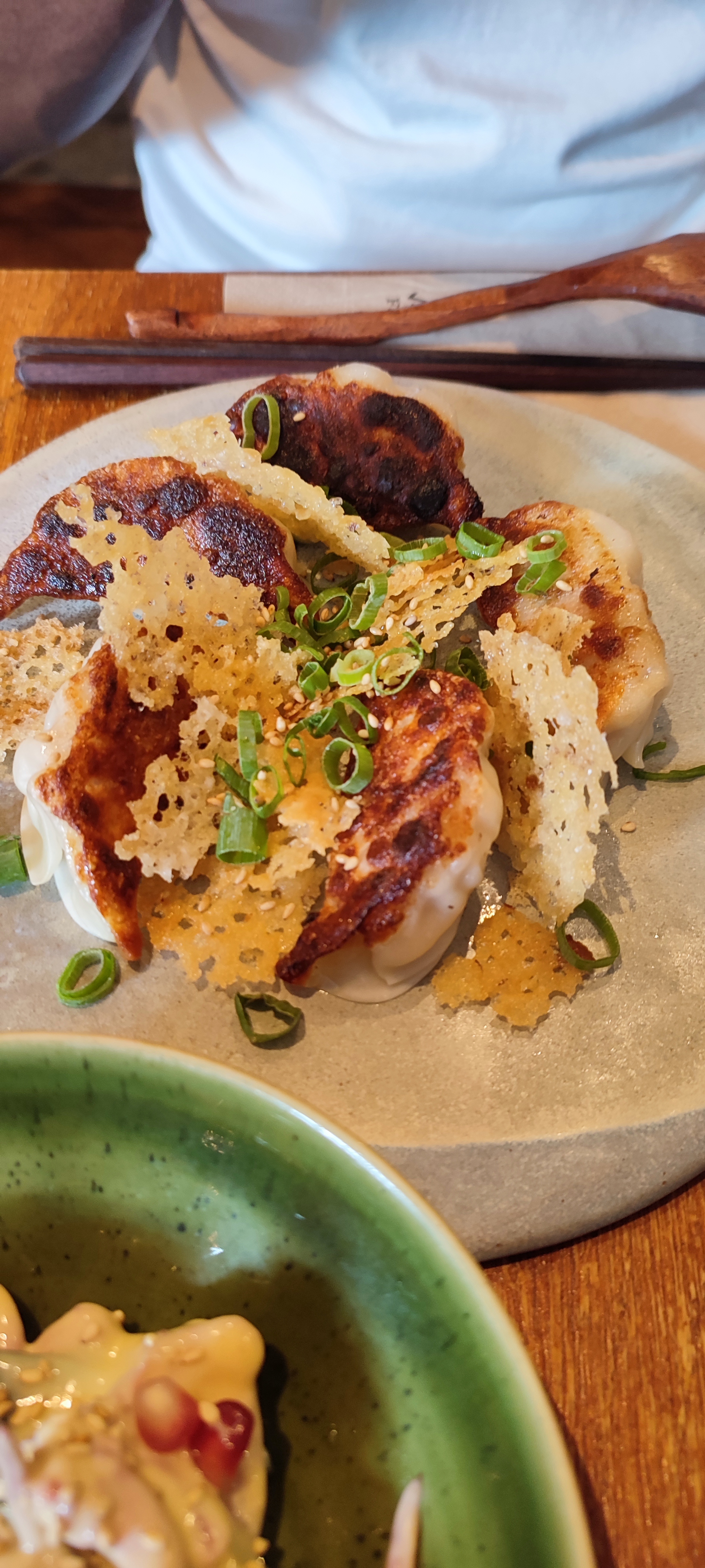 Gyoza : un régal Cocktail au yuzu : fin et bien acidulé Ramen : bouillon pas assez corsé à mon goût Cheesecake au sésame : délicieux mais proportion de cheese trop importante. Une assiette beaucoup plus que juste ébréchée pour les tapas. Quel dommage